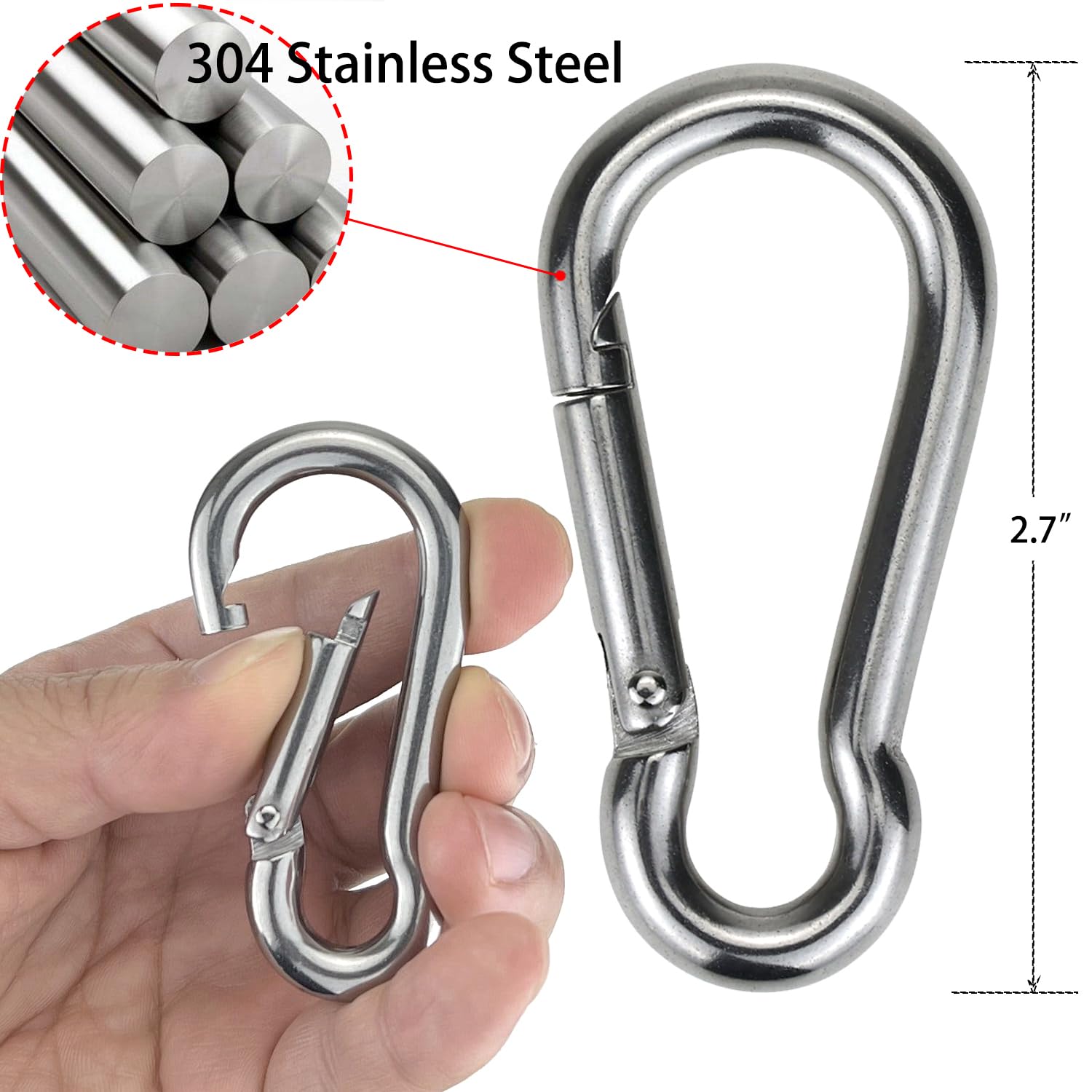 - Ultra-strong weight capacity! 2" wide anti-breakage webbing provides an extra-strong weight capacity of up to 660 pounds, which can meet the needs of 99% of the people who use it. And we equipped with two high quality Stainless Steel link hooks (Usually aluminum or iron), a strong match.