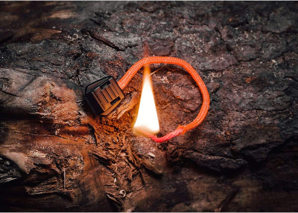 - IMPRESSIVE BURN TIME: Pull back the outer coating and reveal the flammable inner red treated core until it is puffed; it can activate using a Ferro rod such as our nanoSTRIKER XL for a quick spark that burns for approx 1 minute.