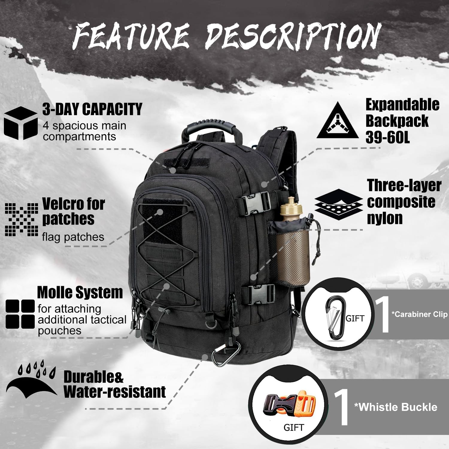 - ✅ Effective: There's plenty of compartments to store and organize your life. The pack holds 3 days worth of clothes along with toiletries and other essential gear. A solid multifunctional backpack for combat, range, survival or hunting. It is water resistant keeping everything dry in a storm.