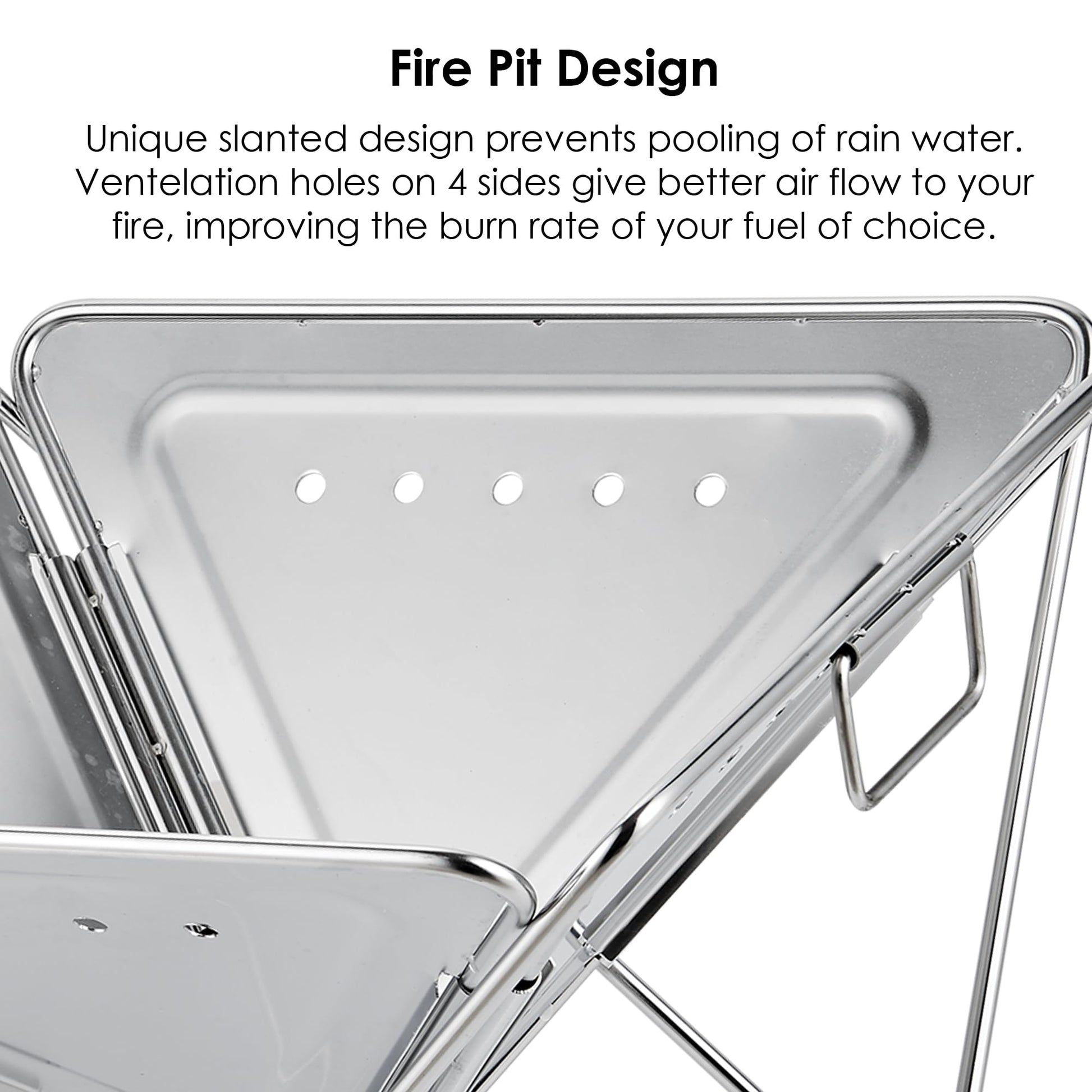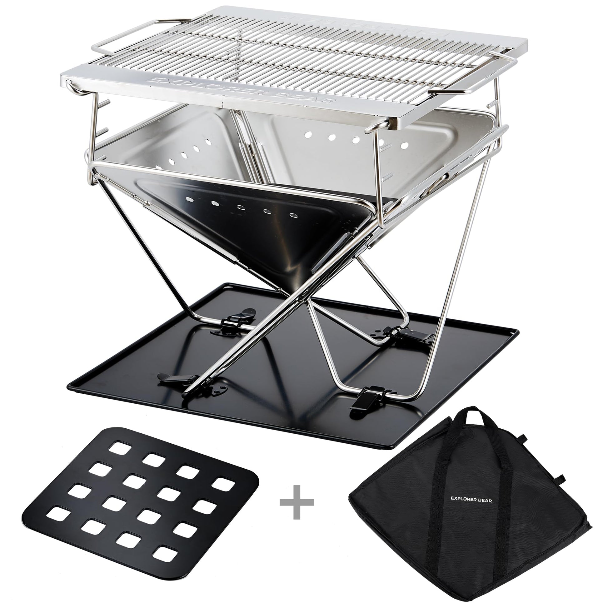 Explorer Bear 20" Stainless Steel Foldable Takibi Fire & Grill with Carrying Bag, Grill Bridge, and Coal Bed | Portable Wood Burning Fire Pit | Perfect for Camping, Outdoors, Patios