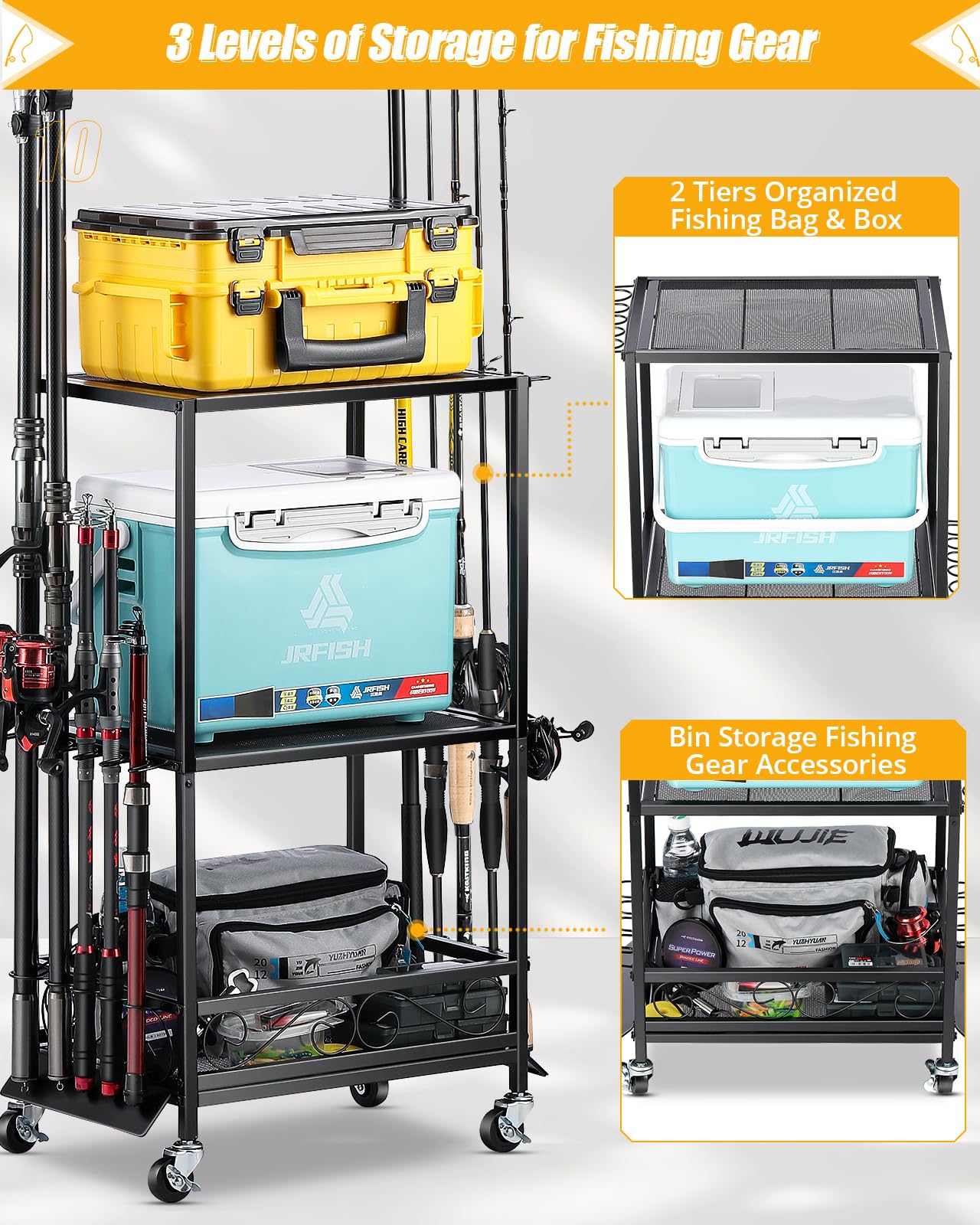 - Efficient 3-Layer Design: Maximize your storage capabilities with our 3-layer design. Store large fishing boxes on the top or second tiers and keep smaller accessories neatly tucked away in the bottom storage bin. It's the ultimate solution for keeping your fishing gear tidy and accessible.