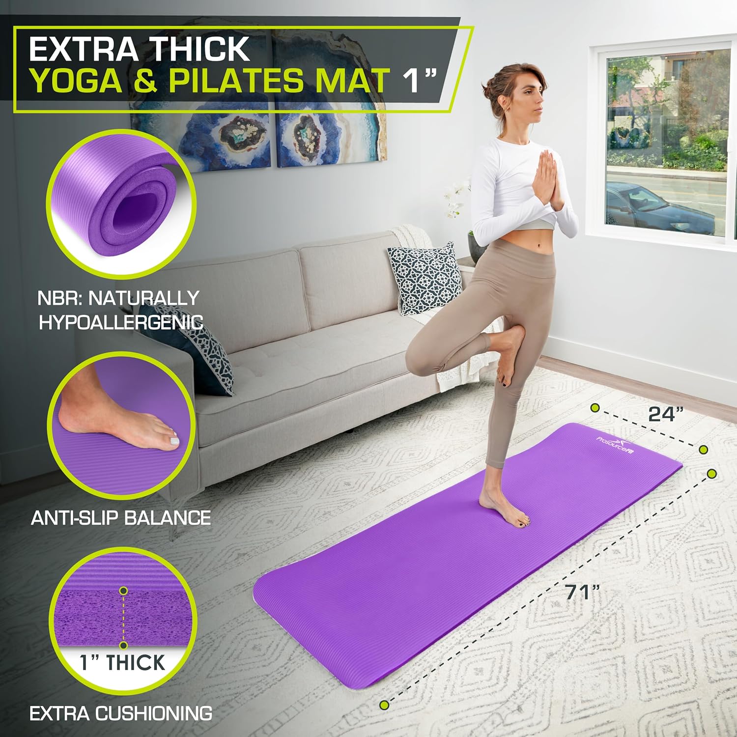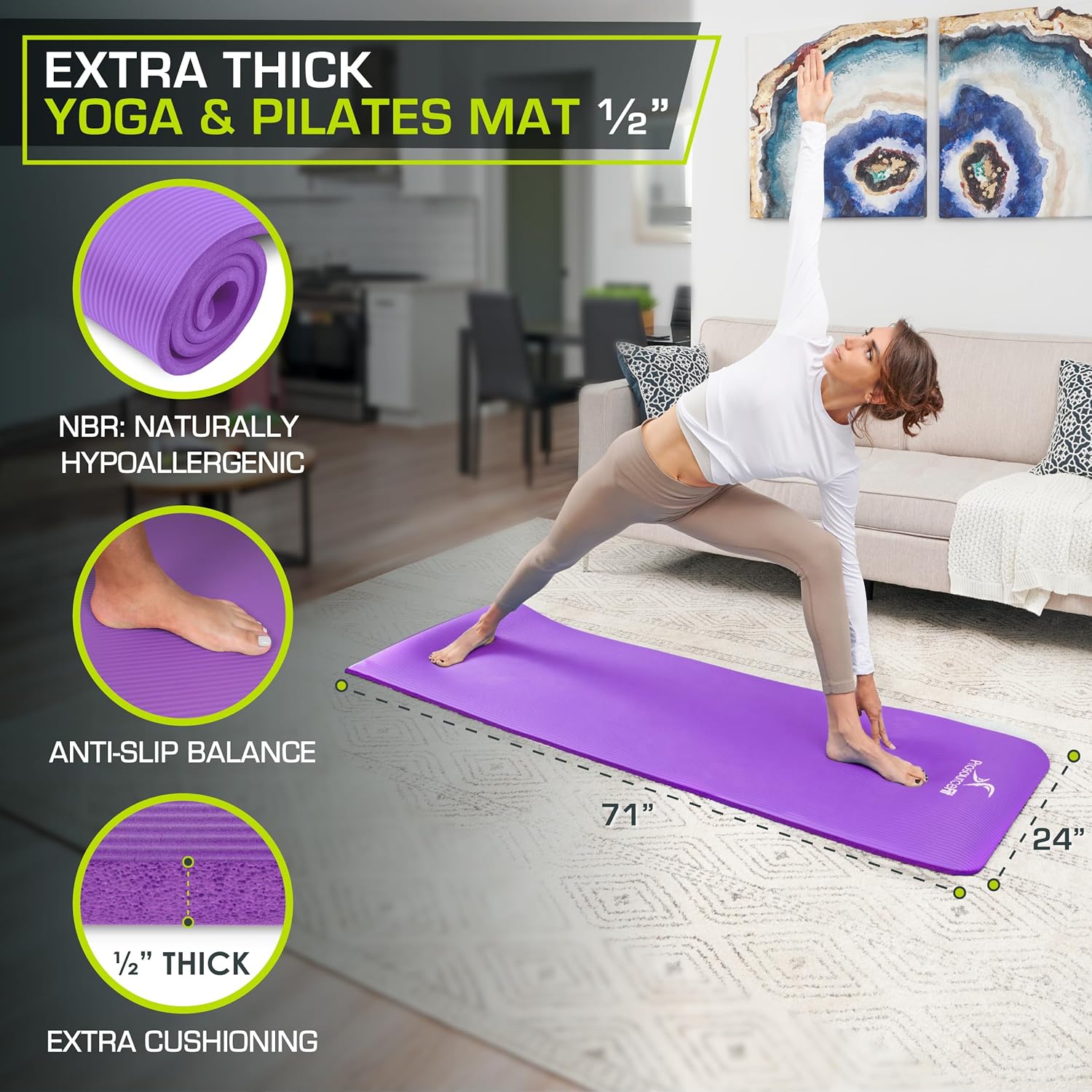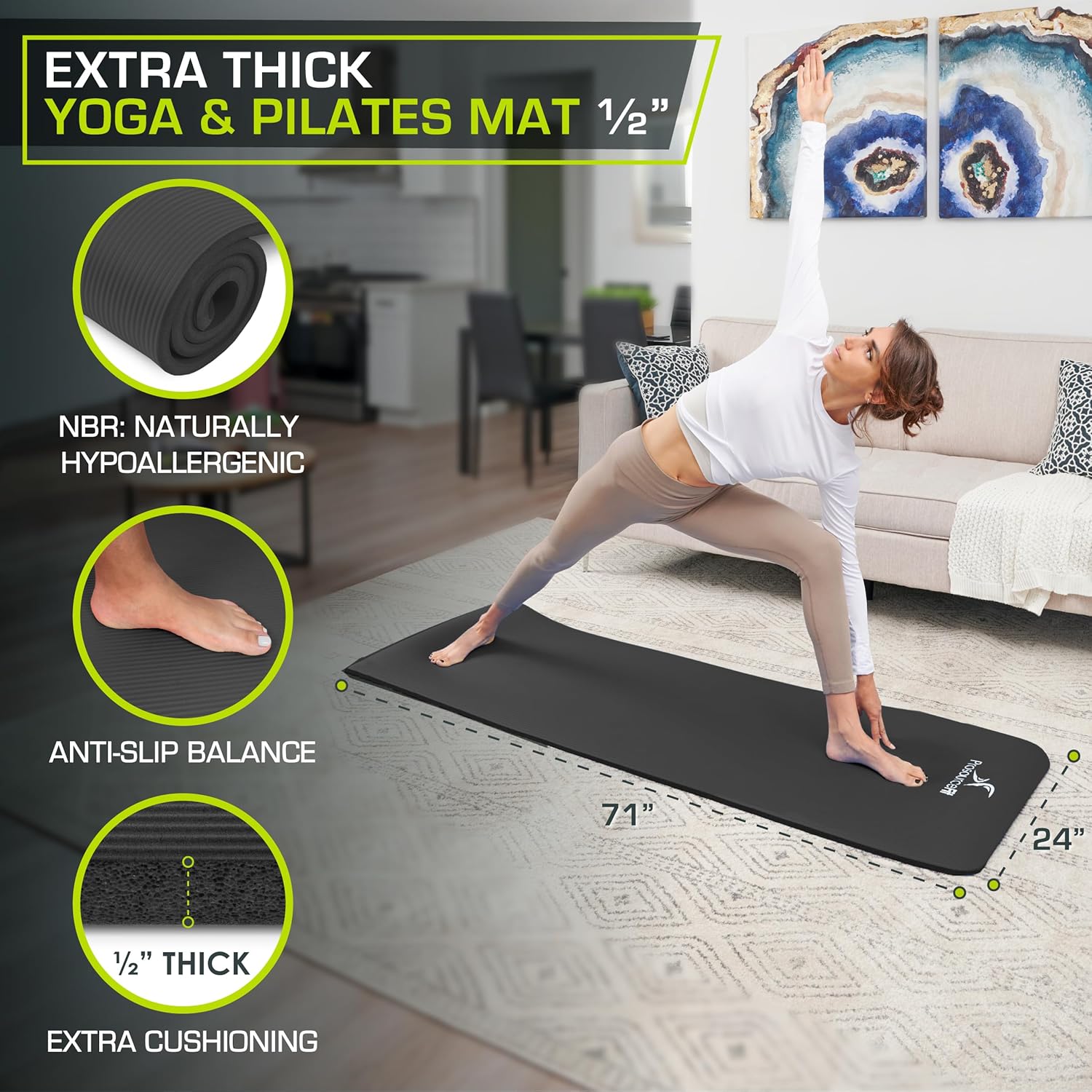 Extra Thick ½” Yoga & Pilates Mat - 71” High Density Foam with Carrying Strap