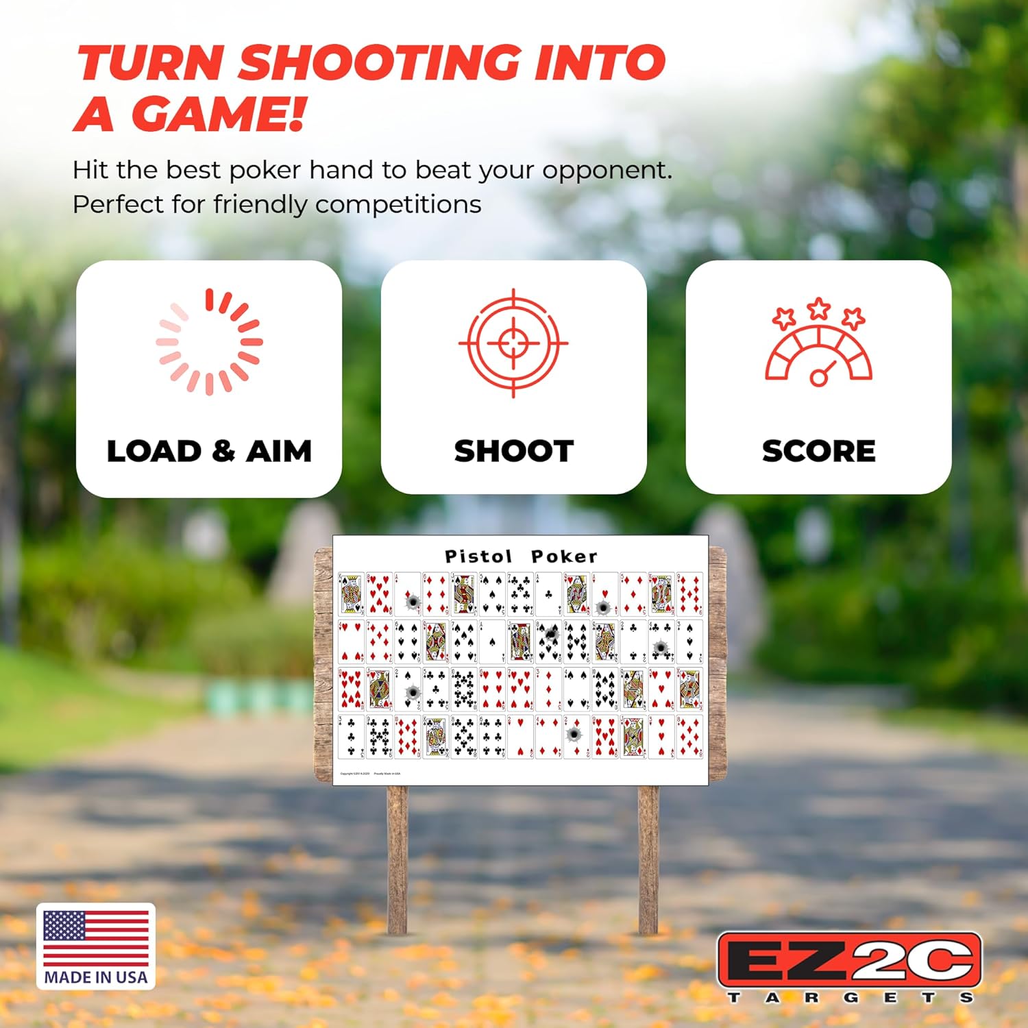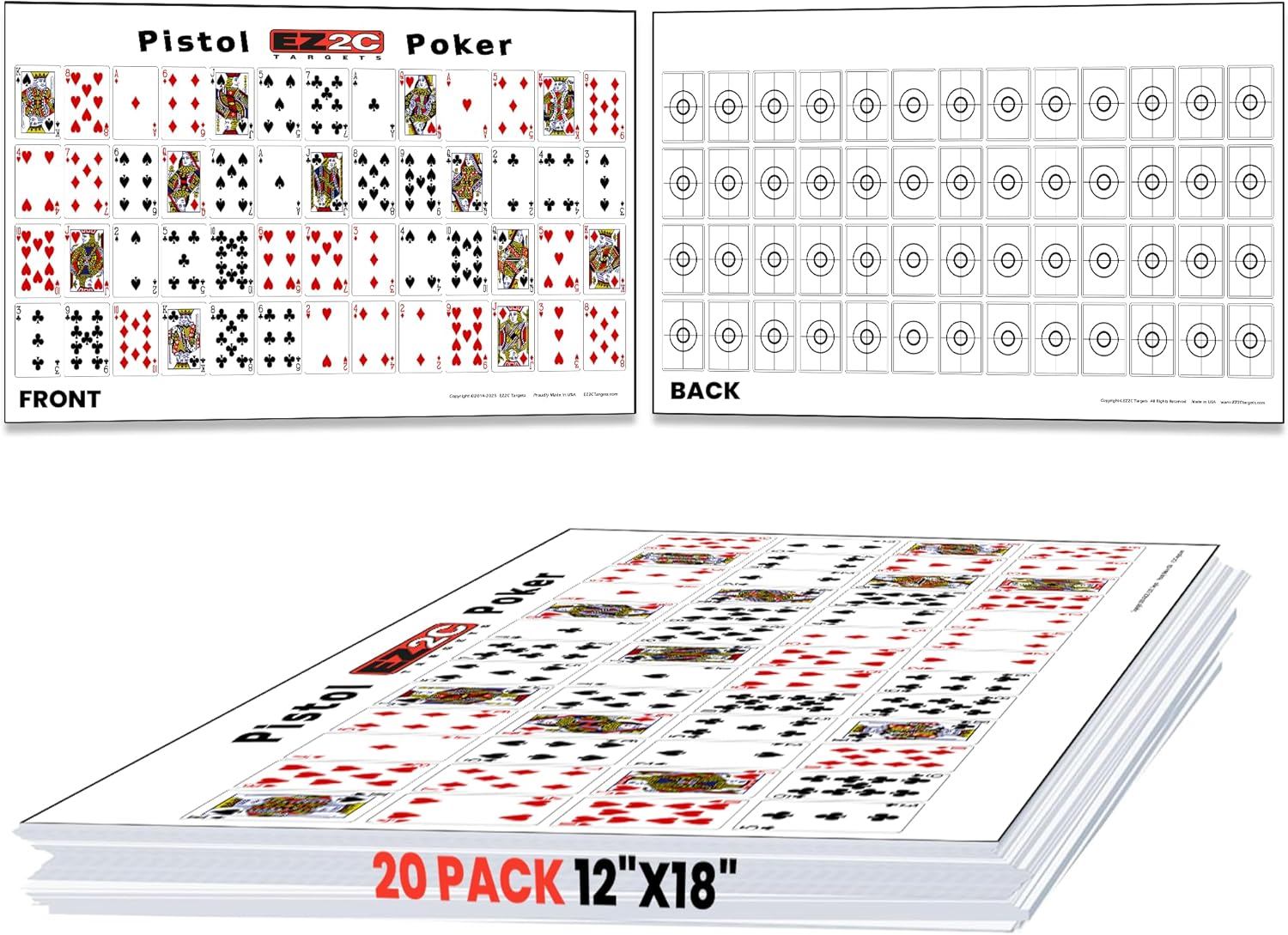 - Play Pistol Poker and Bullesye with Your Friends at the Shooting Range Targets. You Can Shoot Either Side of the Sheet to Play Open or Blind. There are 20 Different Arrangements of Playing Cards.