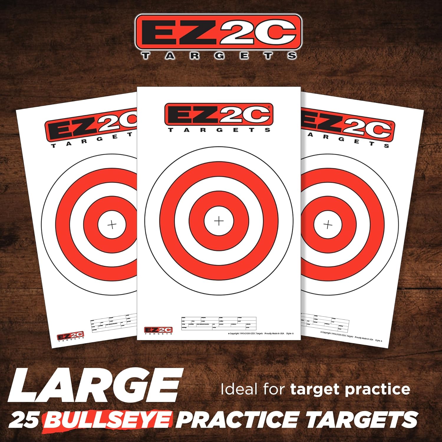 EZ2C Pistol Target, Bullseye Practice Targets for Shooting Range, Made in USA Compatible with All Pistols and Handguns, Tactical Paper Targets for Gun Range 11" x 17" Tear-Off Pad of 25