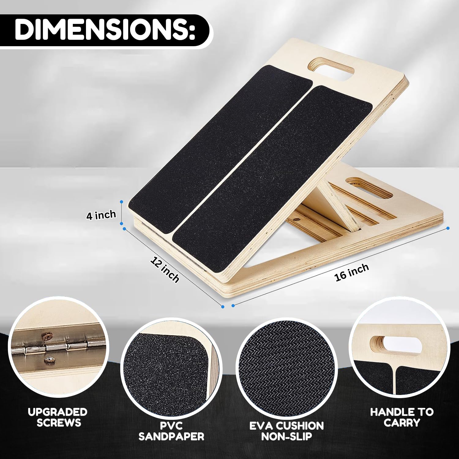 - PREMIUM MATERIALS FOR LONG-LASTING USE: Made with a sturdy combination of plywood, galvanized iron, and PVC sandpaper, this incline board is designed to withstand rigorous use. Its durable hinges and non-slip surface ensure maximum safety during stretching or physical therapy. The included extra sandpaper allows for easy replacement, ensuring the board stays in top condition for years to come.