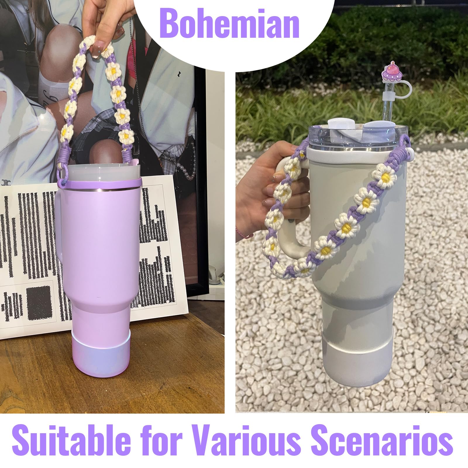 - 【High Quality Materials】This water bottle accessories set are made of food-grade silicone, safe and odorless, reusable and easy to clean. The Bohemian Handle Strap is hand-woven with high-density rope to give your mug a new look.