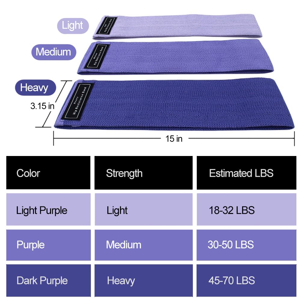 Fabric Resistance Bands for Legs, Thigh, Butt and Hip, Workout Bands, Hip Band, Booty Band, Exercise Band, Fabric Elastic Band for Physical Therapy, Yoga, Pilates and Fitness with Carry Bag, Pack of 3