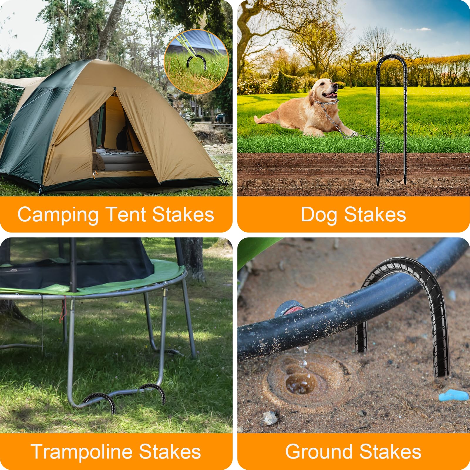 - Wide Applications: These heavy duty stakes are suit for securing trampolines, chicken coop, camping tents, outdoor plants, fences, chain link fence, canopies, landscape decorations, irrigation hoses, turf, tarps, fabrics, garden structures and sports nets