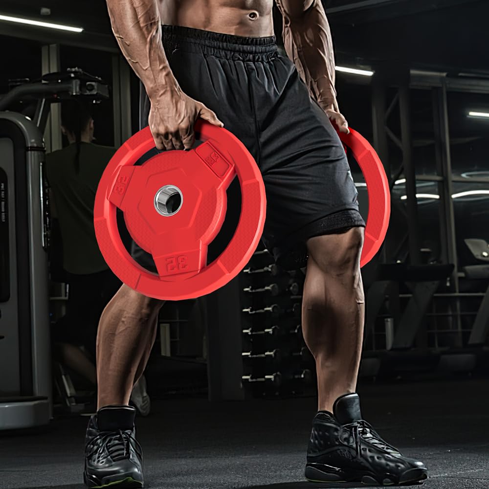 - 💪SOLID & DURABLE MATERIAL: FAGUS H 2023 new design weight plates are coated with odor free 100% virgin rubber and solid cast iron core, which will make less noise than traditional iron plates and protect your floors when dropping the plates on the floors. The tri-grip design is ergonomic and easy to grip, you can do squats and weightlifting exercise without barbells as well.