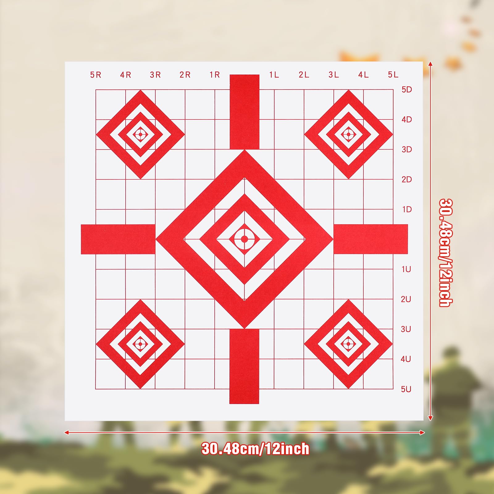 - Shooting Enthusiast Designed: the shooting targets for the range are designed with a 12 inch rhombus and four 6 inch little rhombus to target place and outside zone, which is ideal for accuracy and precision practice, training for upcoming competitions, shooting games, and self defense training or indoor and outdoor use and hunting practice
