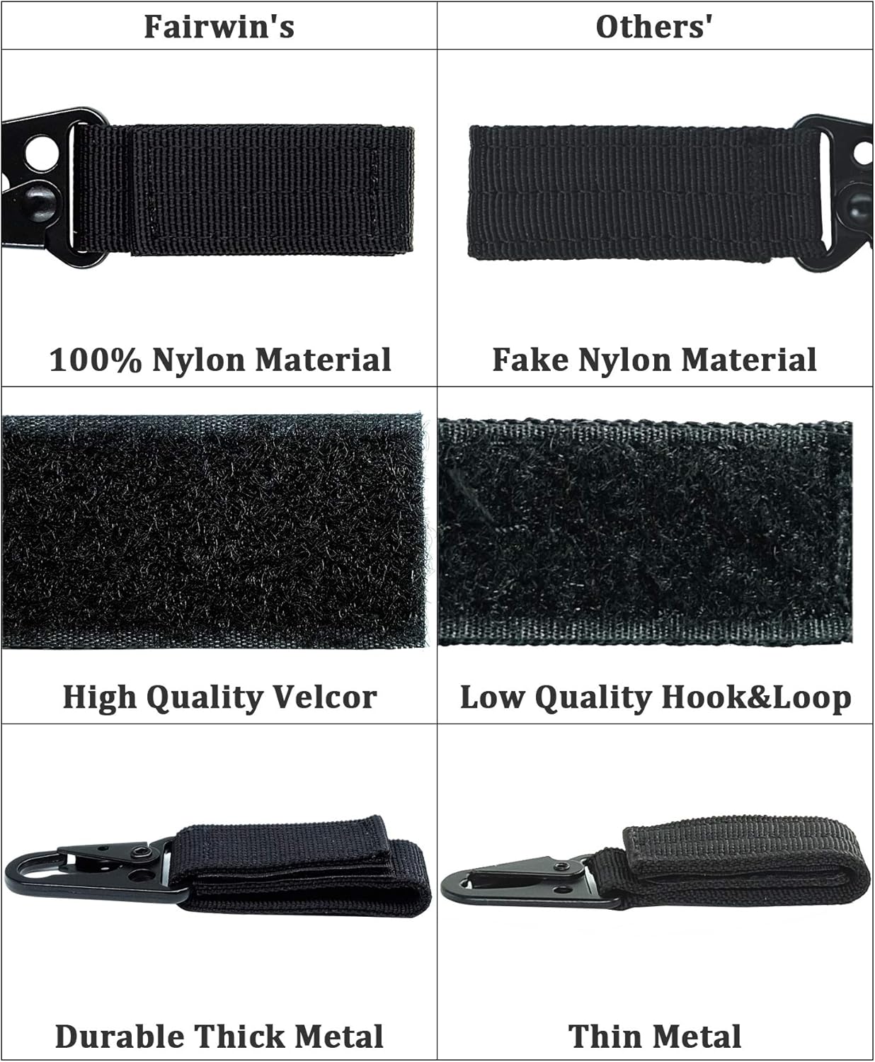 FAIRWIN Tactical Gear Clip, Nylon Key Ring Holder or Belt Keeper Military Utility Hanger Carabiner Molle Hook, Black, Tan, Green