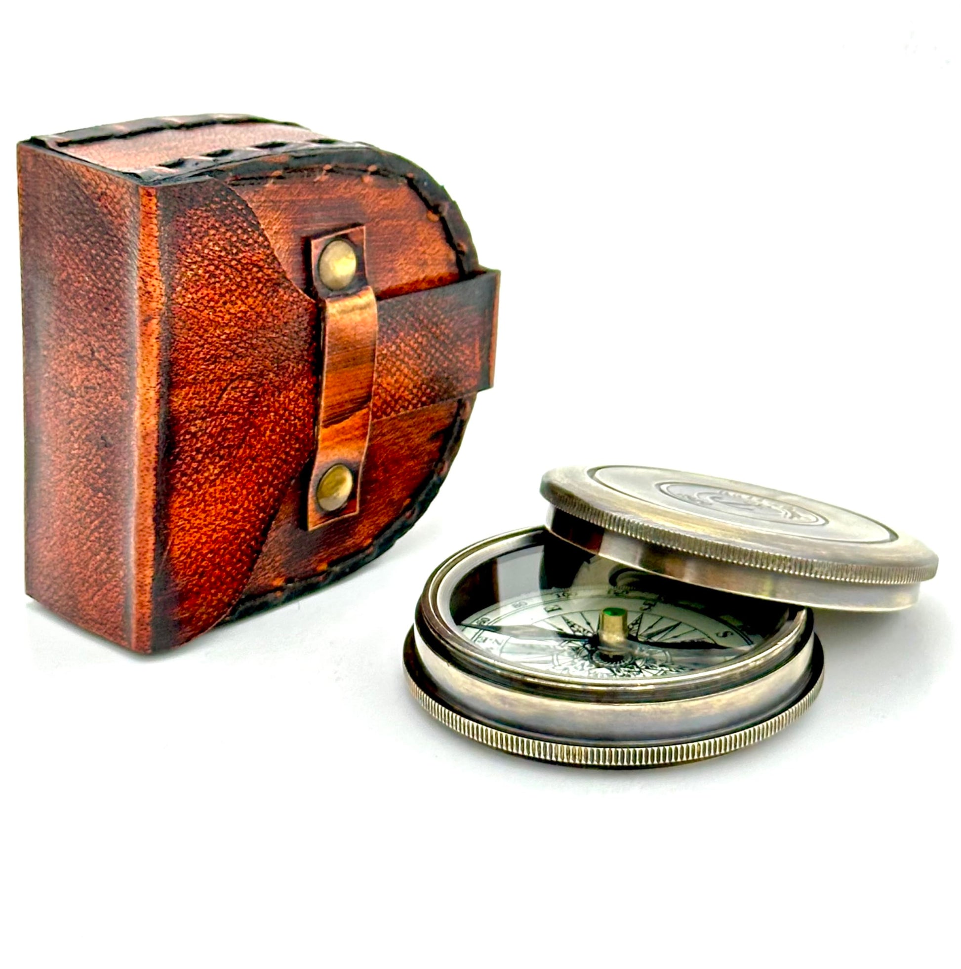 - Pocket compass - Compass with Leather Box - Steampunk Retro Gift- Nautical compass - Vintage Style Engraved compass - FAITH is the light that guides you