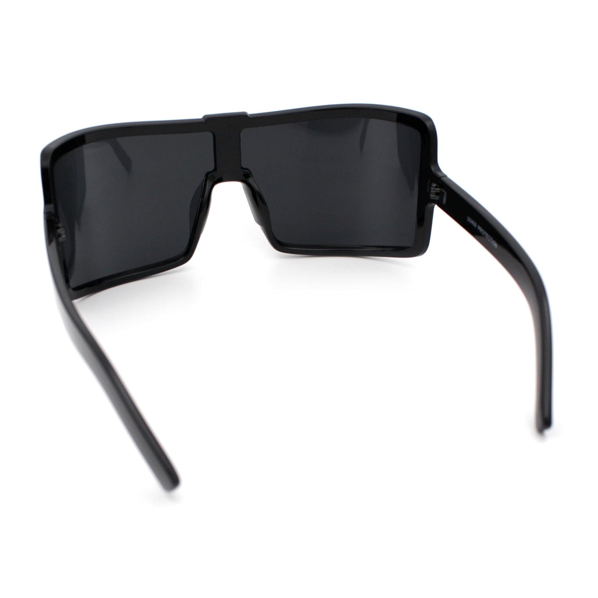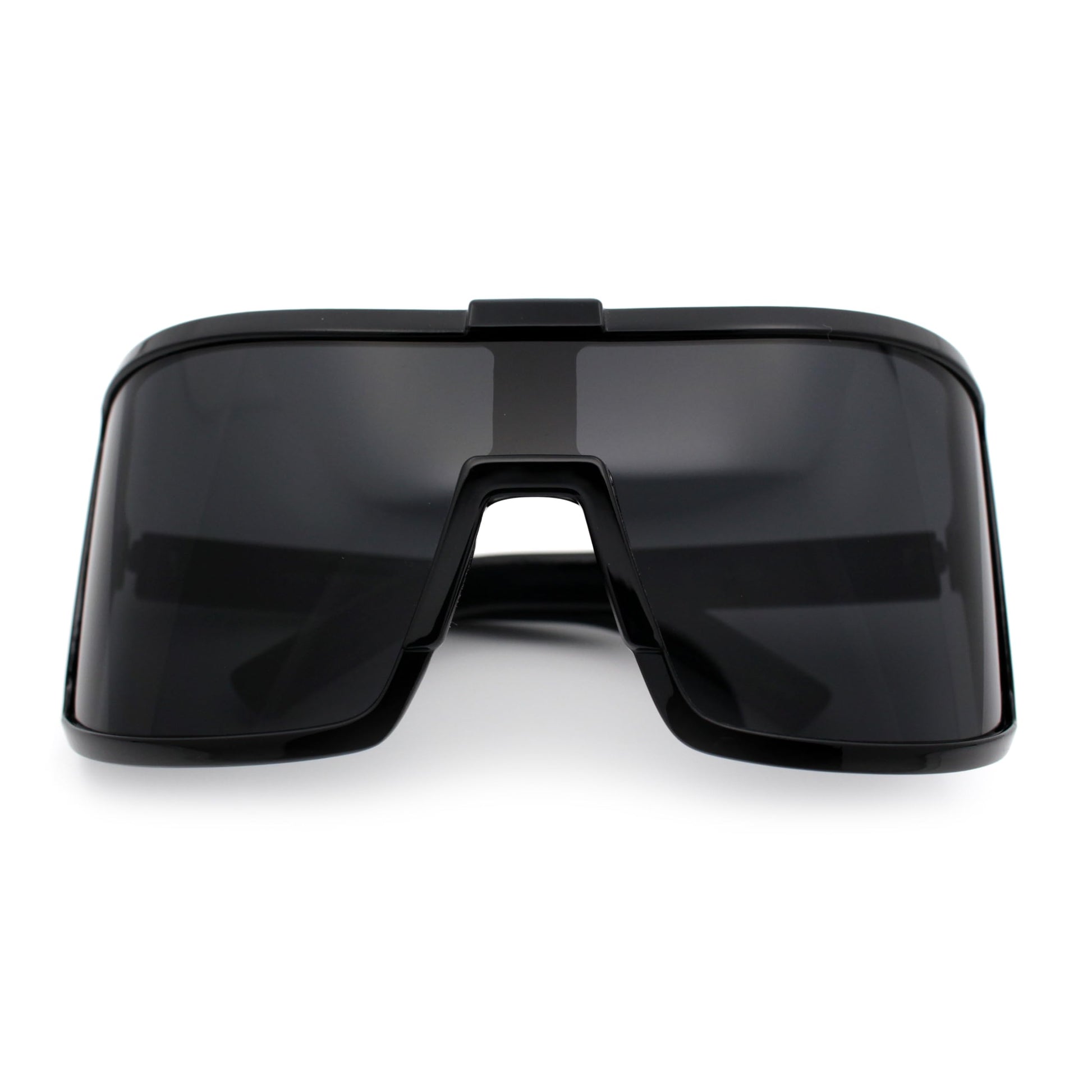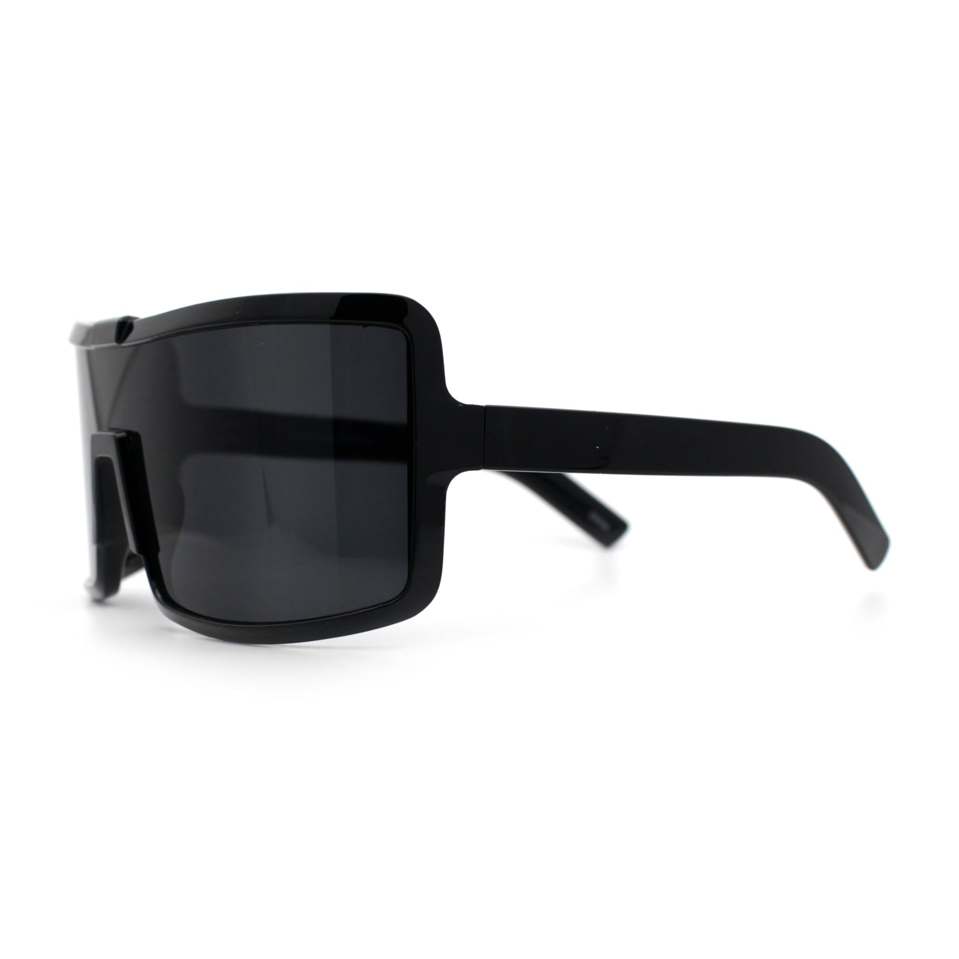 Fancy Large Oversized Curved Panel Monoblock Shield Sport Plastic Sunglasses All Black