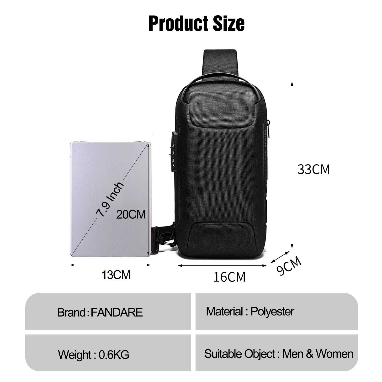 FANDARE Anti-Theft Sling Bag Chest Shoulder Backpack Crossbody Bags for Men Women Cover Pack Hiking Small Rucksack with USB Charging Port for Business Travel Hiking Bicycle Sport Gym Pack Black