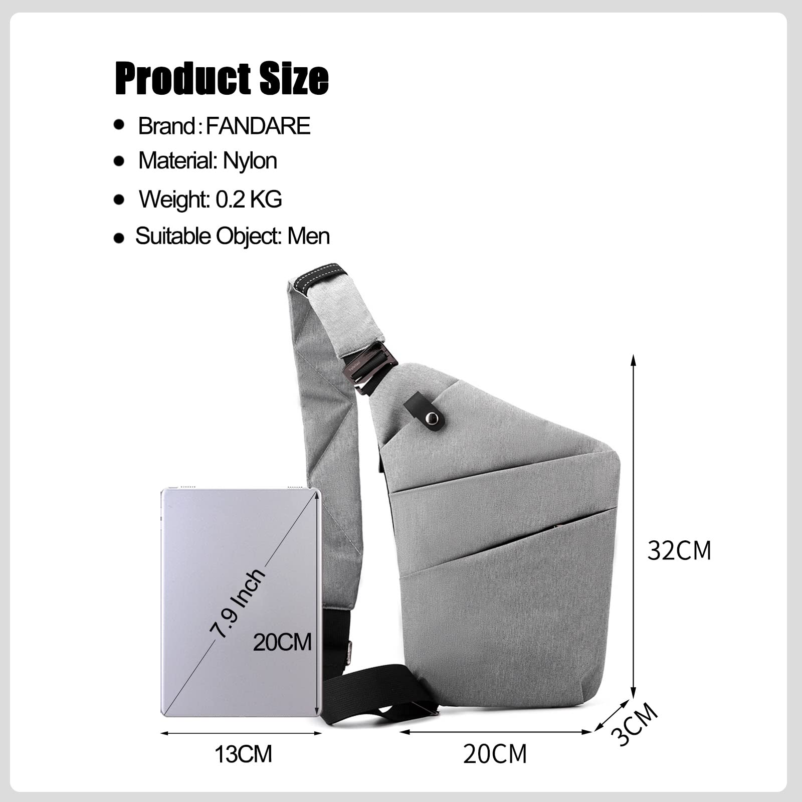 - ✔ Compact Flat Sling Bags - Dimension:20x3x32cm(Length x Width x Height).Compact design, trendy crossbody bags for women men, which is prefect for flat valuable things while traveling, shopping, outdoor, like the tablet, phone, wallet, passport, ID card, cash, map, charger cable, power bank, earphone etc. A great sling bag for business, travel,outdoor.