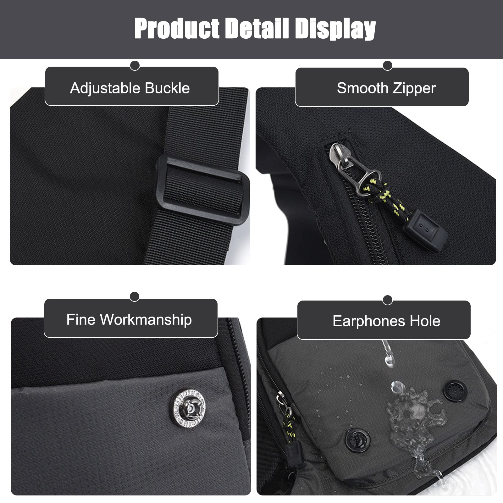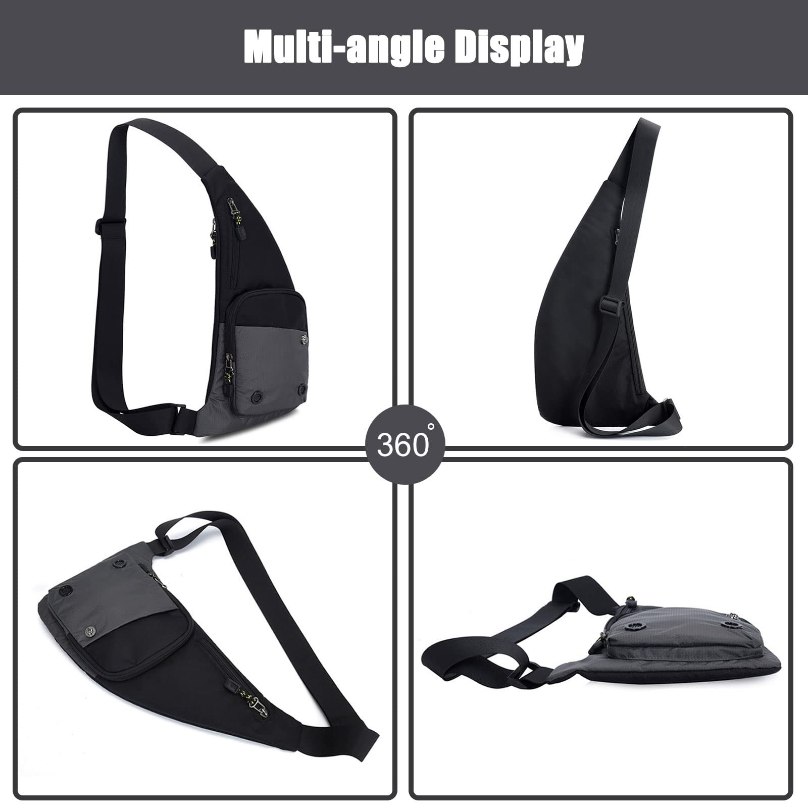 - ✔Multipurpose Crossbody Bags - Our Chest pack is made of water resistant nylon fabric, very durable and lightweight. The shoulder strap and the back is made of breathable material, make you feel comfortable when travel, hiking and so on. No worry to feel hot with the breathable back design. Adjustable shoulder strap fits both regular and plus-size person, designed for anytime. Excellent stitching technic makes the small and slim sling backpack more strong and sturdy.