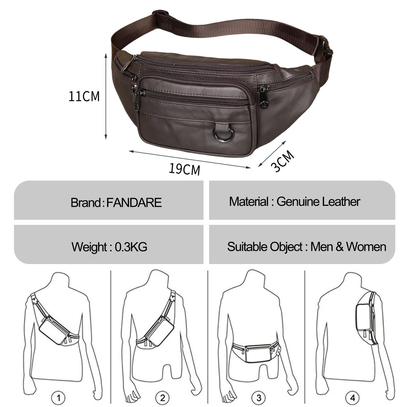 - ✔ Waterproof & Water-resistant. Used 100% water resistant & waterproof Genuine leather and inner nylon material; the FANDARE waist pocket bag will keep your items dry and safe from moist weather. Our holiday hip pouch pack pass pull the test, strong buckle and run smoothly, Stitch and zip is firm, high density webbing make it more stable, Used a wear-resistant soft pad and proper curvature one the back of the bag.