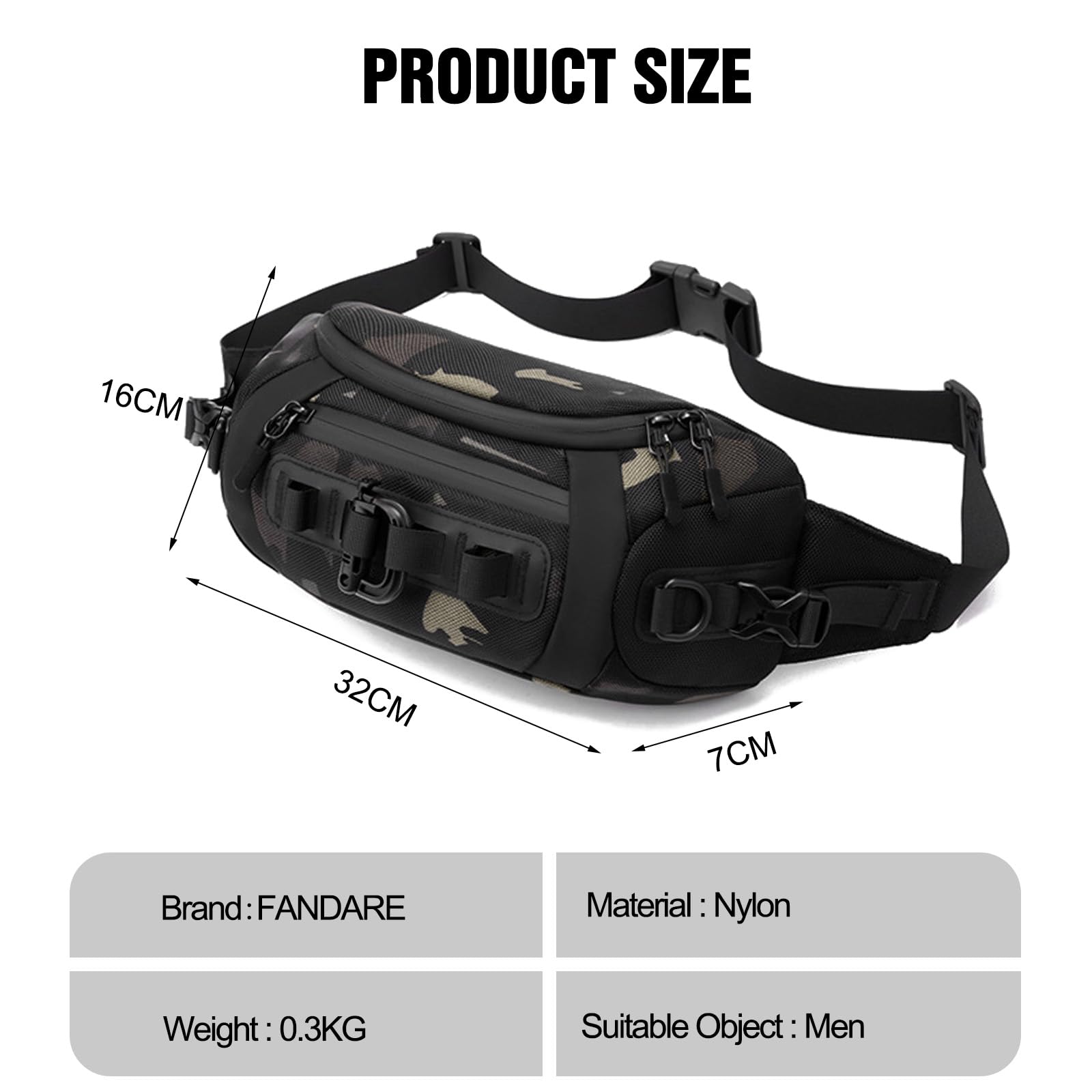FANDARE Waist Fanny Pack Casual Sling Bag Sport Bumbags for Women Men Chest Crossbody Bags Cover Pack for Hiking Cycling Travelling Outdoor Gym Business Nylon Shoulder Pouch Camo