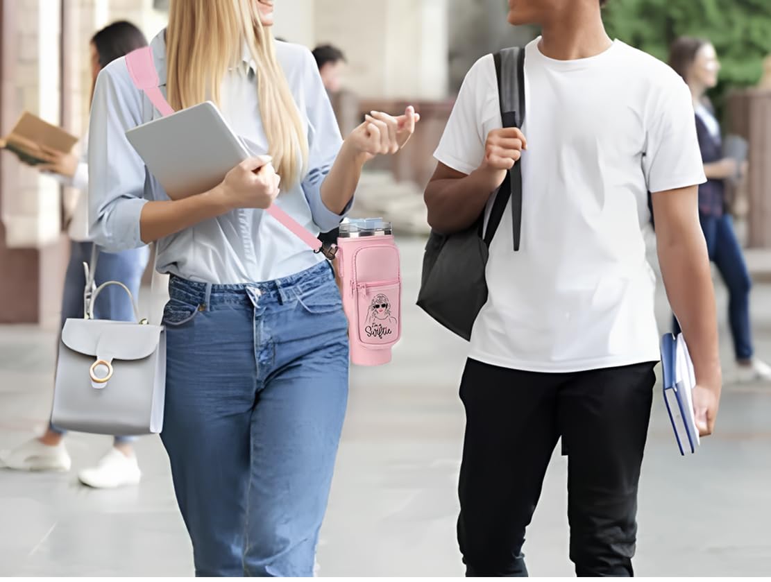 - 【Adjustable Shoulder Strap and Pockets】 Carry your essentials in style with our Quencher 40oz Cup Sleeve, featuring two spacious front pockets perfect for your smartphone, cash, cards, and keys. The adjustable shoulder strap, ranging from 27.5” to 50”, ensures a comfortable fit for all body types, and the inspired design makes it the perfect accessory for any celebrities loving occasion.