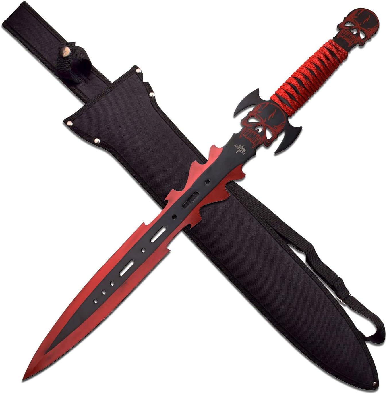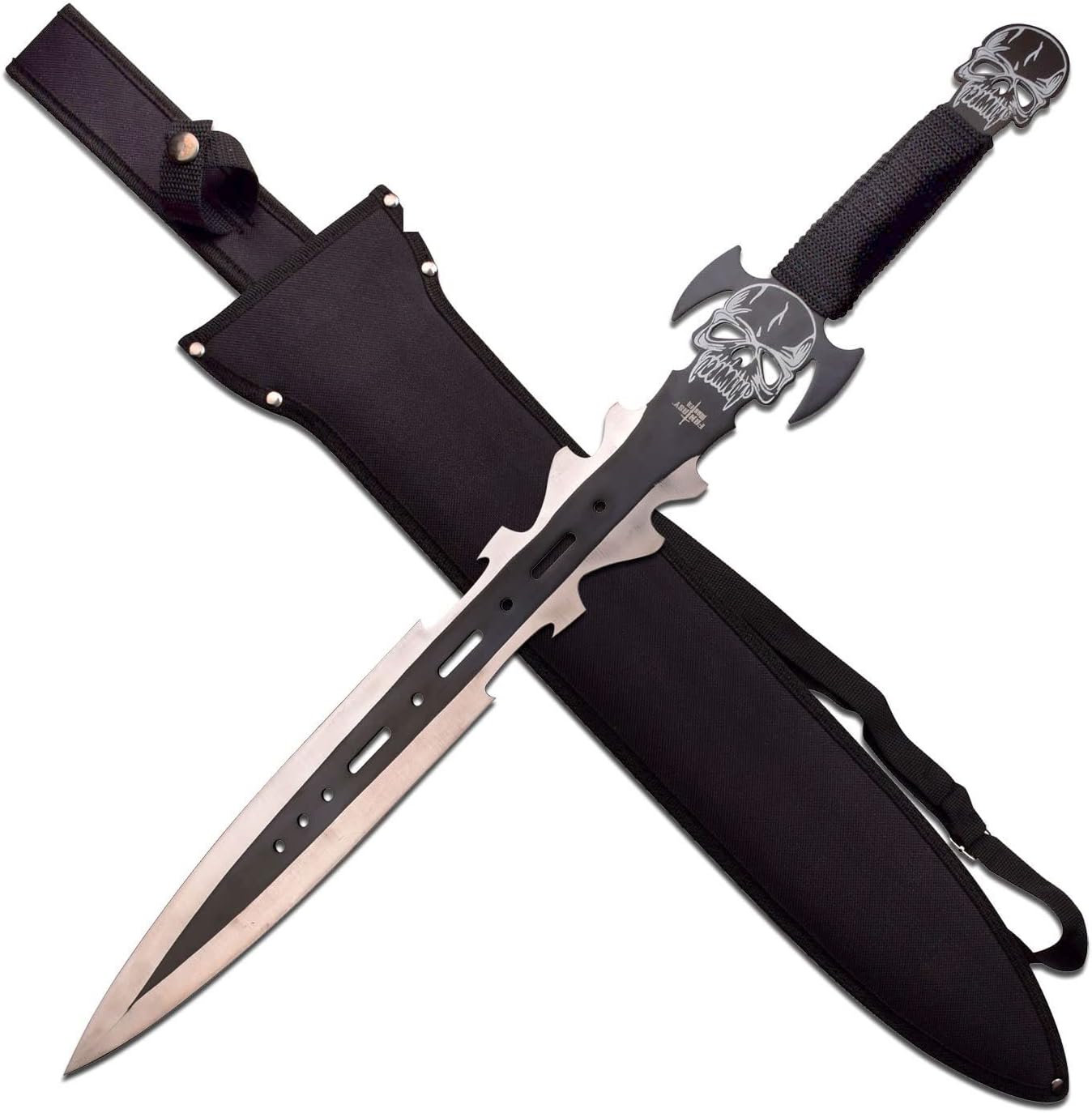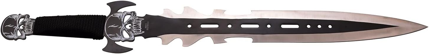 - SPECIAL FEATURES: Fantasy Sword - The Skull Crusher - Black Oxidized and Satin Finish Stainless Steel Blade, Full Tang Construction, Black Cord Wrapped Stainless Steel Handle with Dual Skulls, Includes Black Nylon Sheath for Easy and Safe Transport.