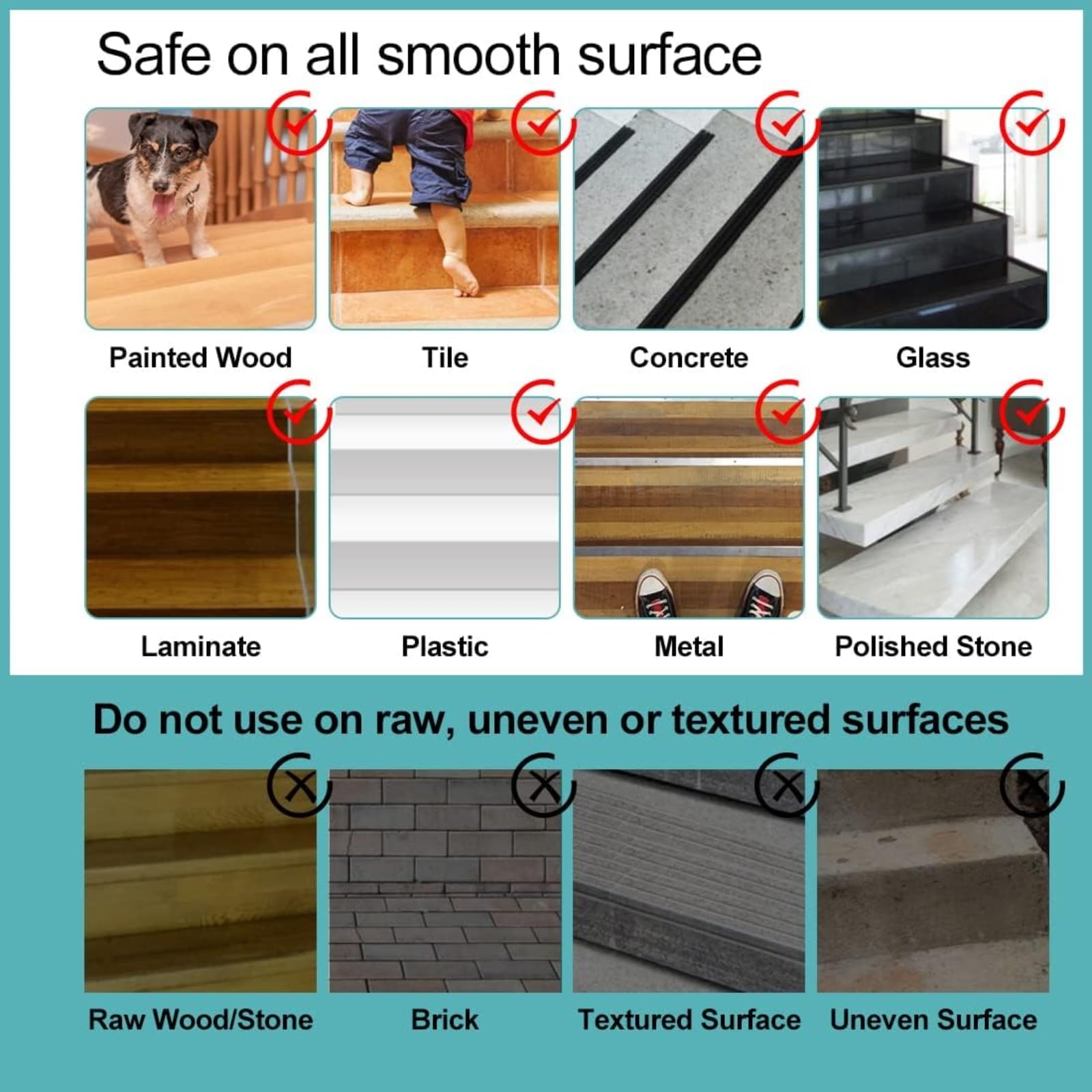 - 【Strong Adhesion】Staircase anti-slip strips have an acrylic pressure-sensitive adhesive on the other side, which has a strong adhesive strength and leaves no traces when peeled off, and can be applied to concrete, ceramic tiles, glossy stone, wood, metal, glass, painted surfaces, terrazzo, paper surfaces, plastics, and other smooth, flat, and clean surfaces.