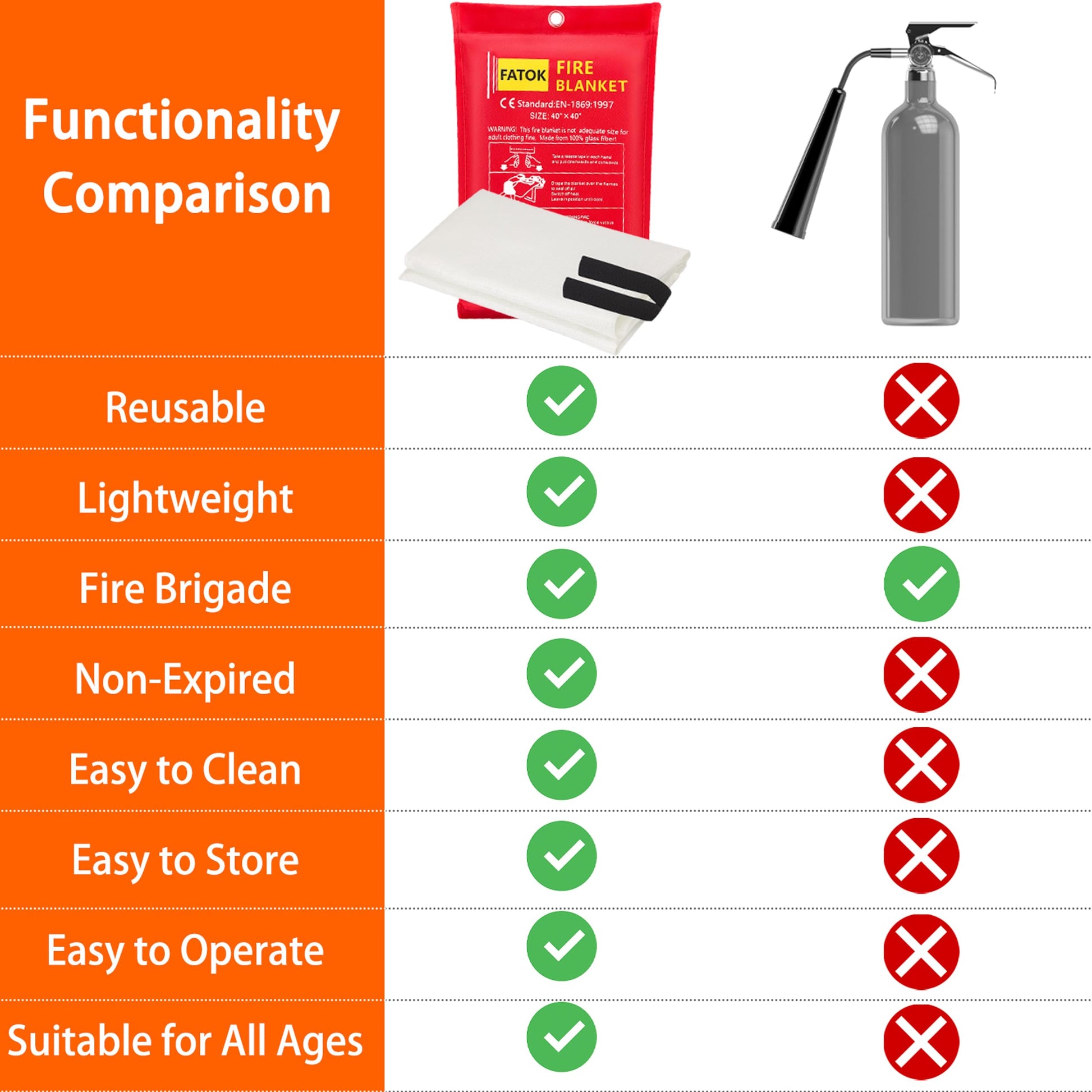 - DOUBLE-SIDED FIRE PROTECTION: The FATOK Fire Blanket provides 2-in-1 protection against household fires with its flame-retardant fiberglass fabric. It's perfect for use in the automotive, kitchen, around the grill, or during other outdoor activities.