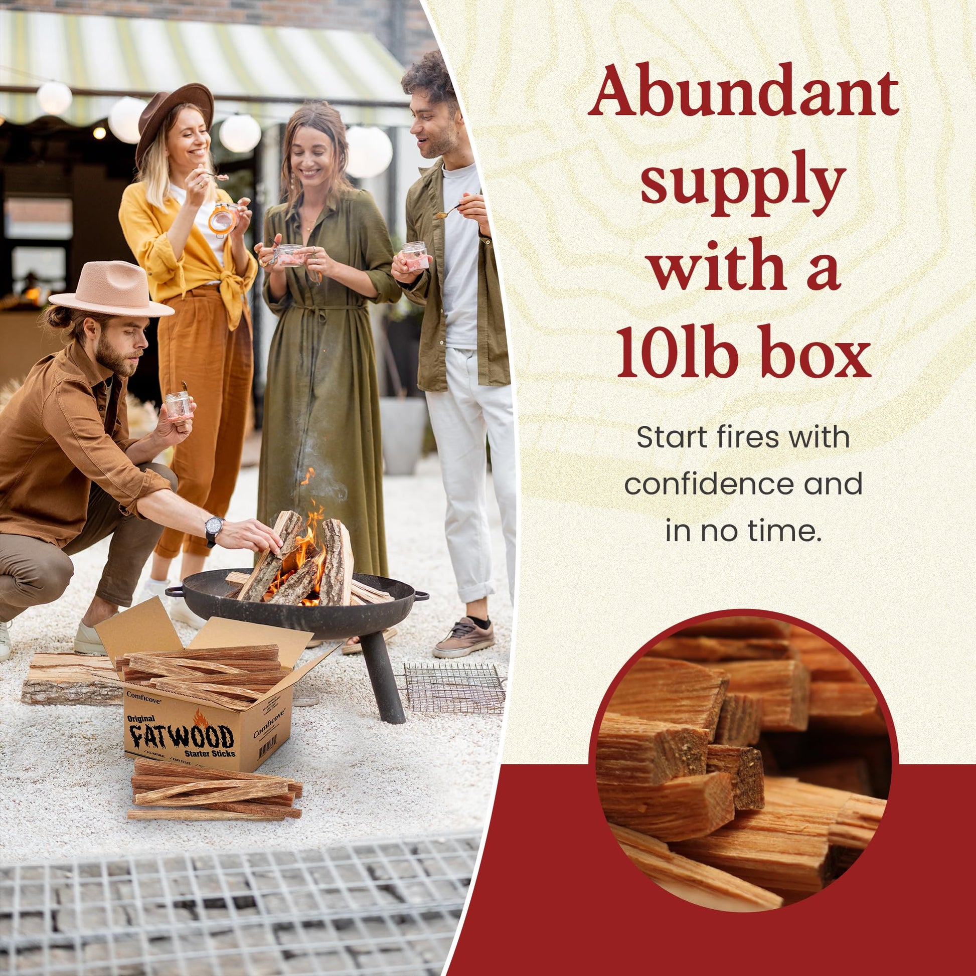 - Rich in Resin - Made from resin-rich pine trees, Comficove fatwood kindling offers exceptional quality for starting fires, ensuring a fast and efficient burn every time. Enjoy quick ignition and a robust flame with minimal effort.