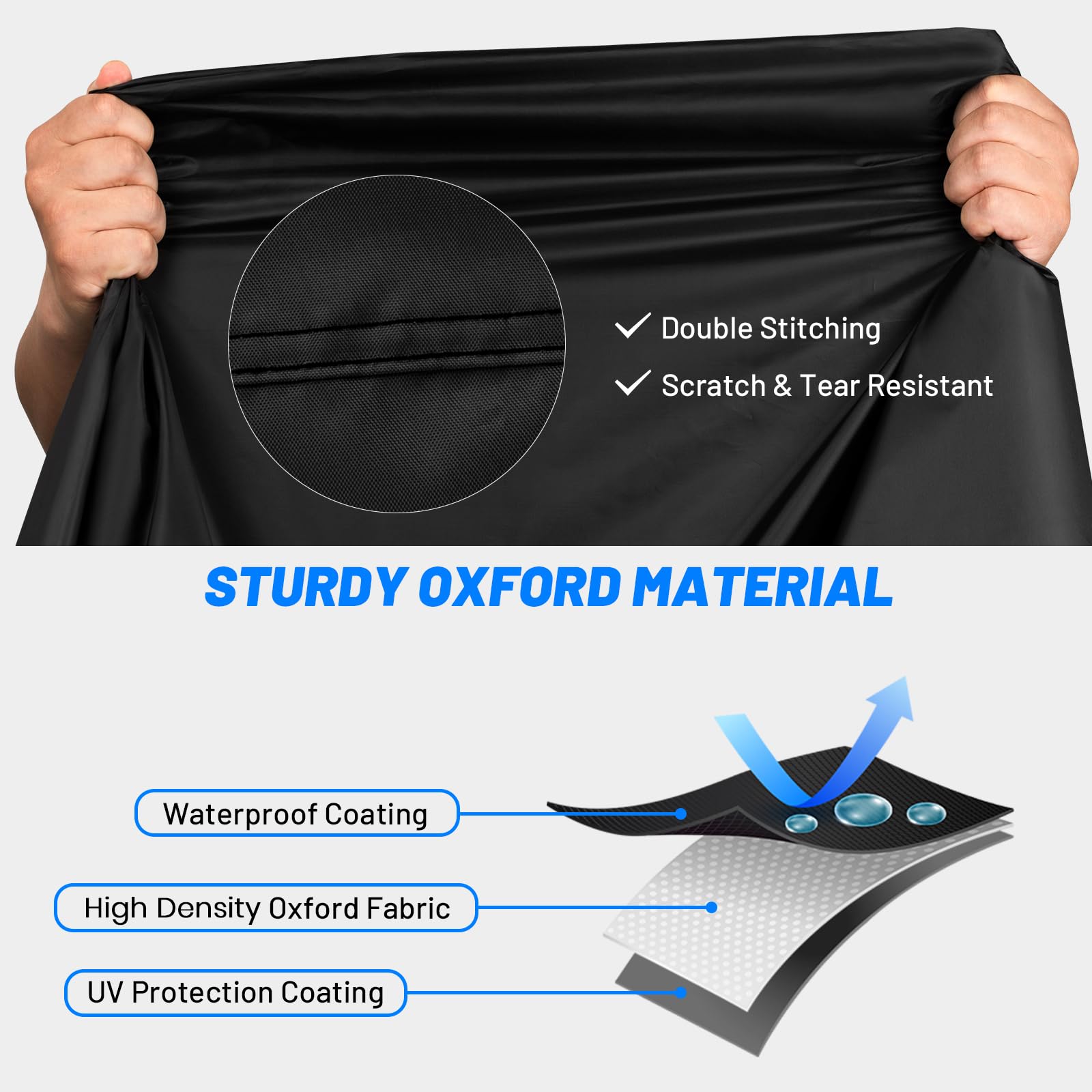 - [Material Features] - Favoto bike cover is made of sturdy oxford fabric with triple-layer protection: a waterproof coating, high-density Oxford fabric and UV protection coating. Its multi-layer design allows it to withstand water pressure up to 3000mmH₂O, ensuring excellent waterproofing and strong protection for your bicycle.