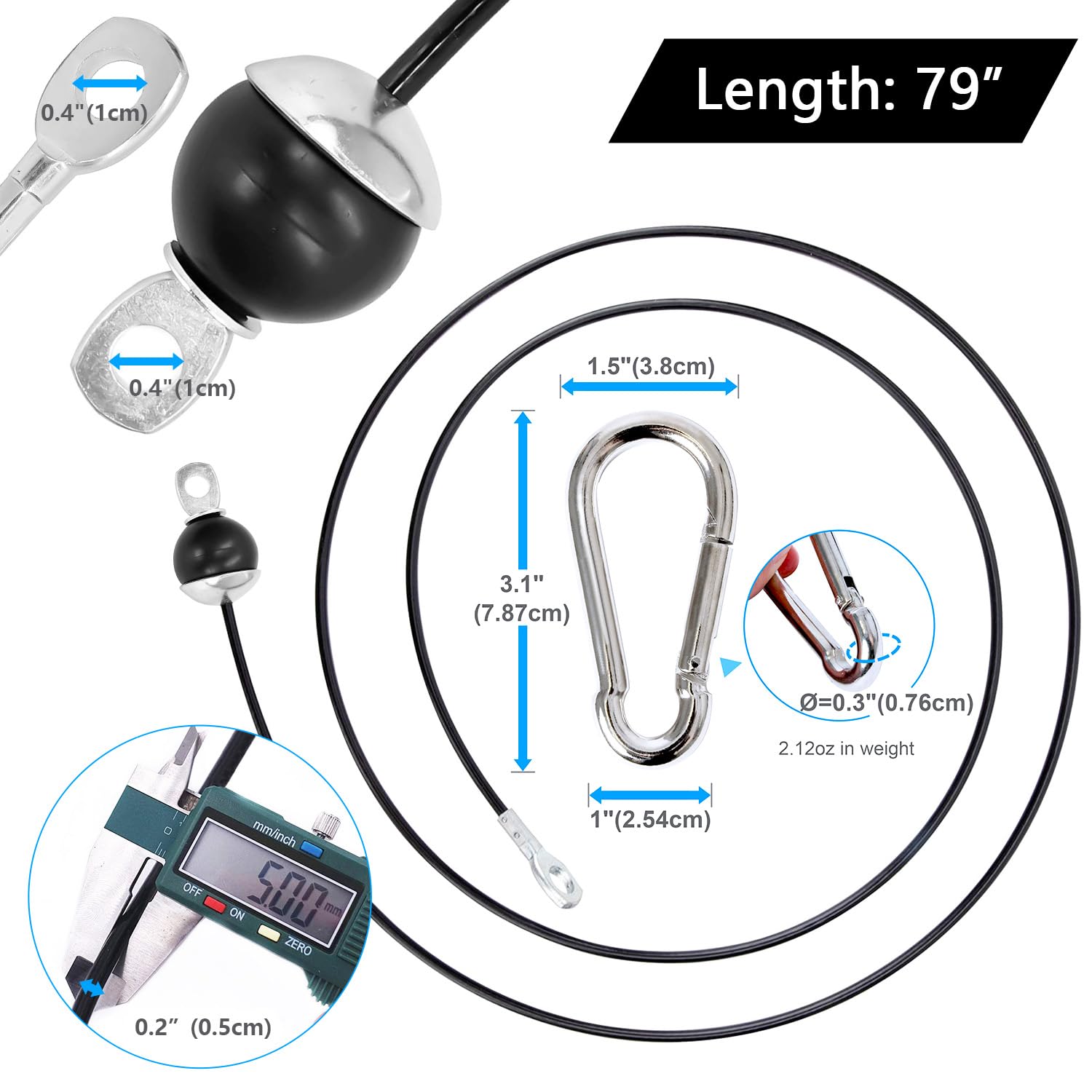 - SAFETY DESIGN - Professional cable machine replacement cable with a stopper ball and wire is consists of 7 shares, 19 wires per share.The ball prevent the cable shakes,the metal sheets prevent the rubber stopper ball to hit the pulley during use it,which makes it safer and more stable.