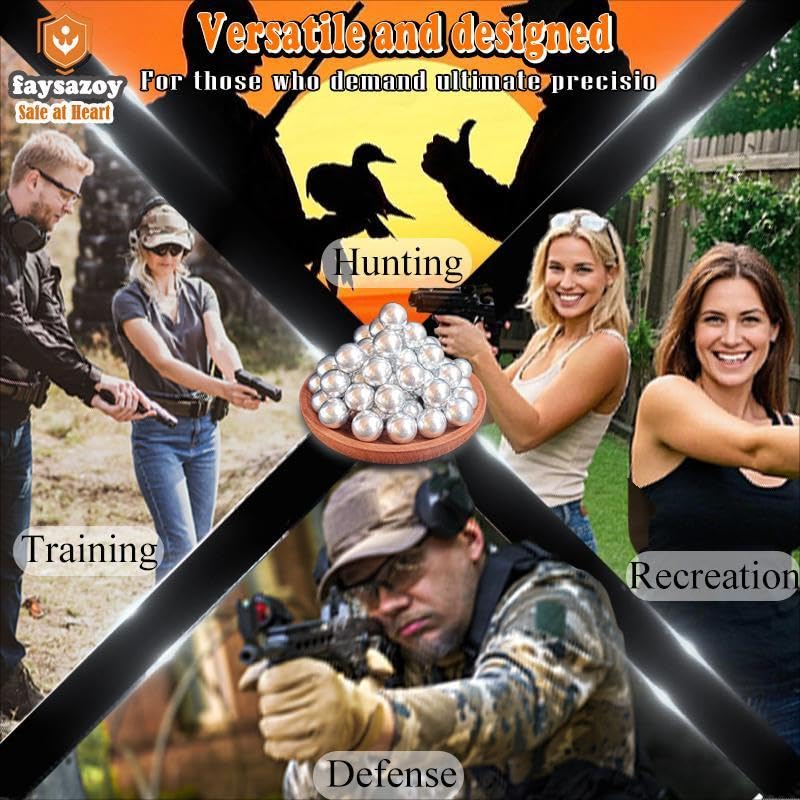 Faysazoy 50 x .68 Caliber Self Defense Balls & Projectiles, 7.3g, Hard - Reusable 0.68 Caliber Aluminum Balls for Home Defense, Practice, and Training (50)
