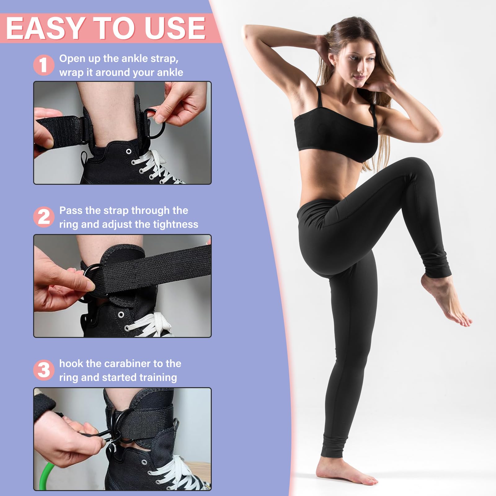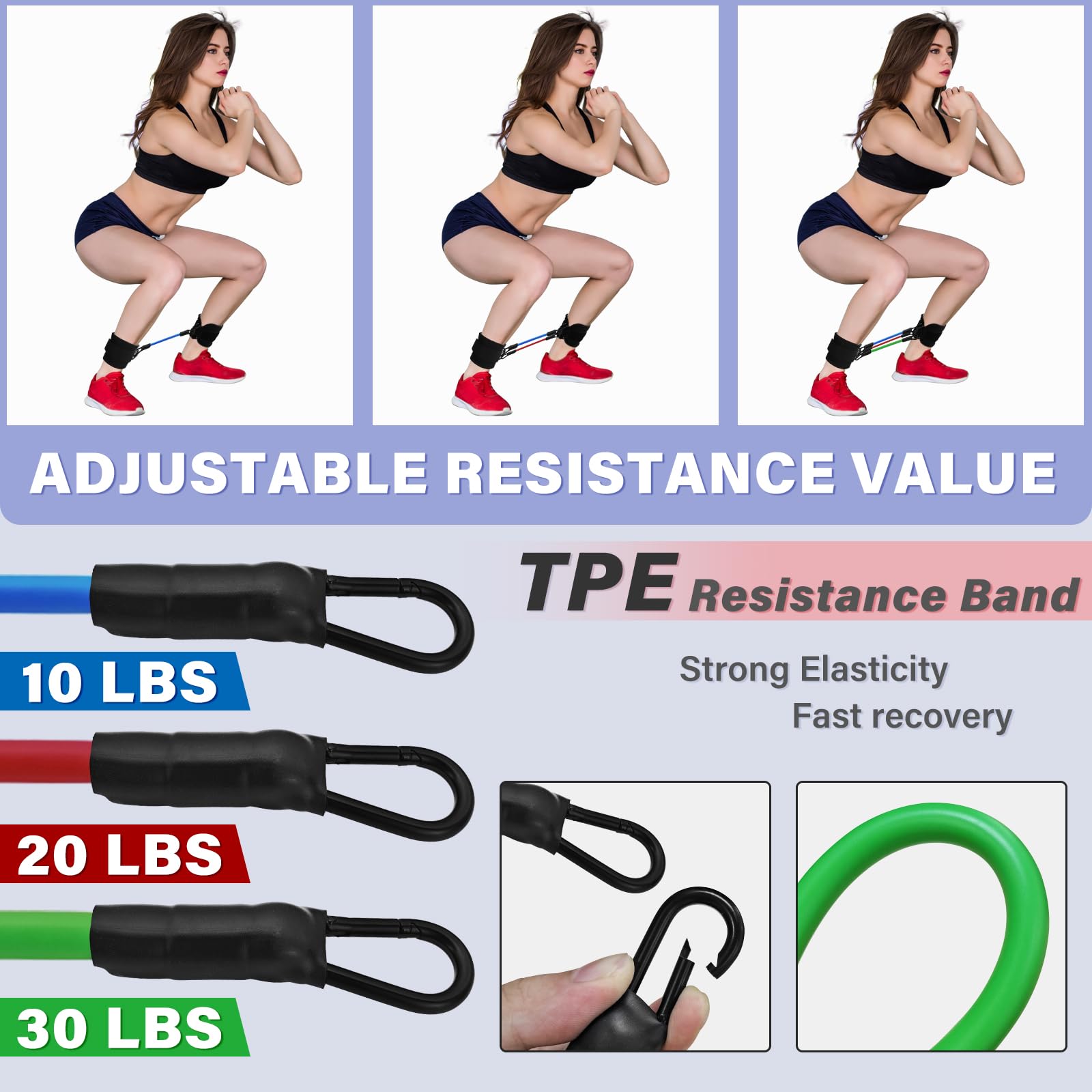 - Quality Material: Leg resistance bands with ankle cuffs are made of quality sponge and latex material, flexible and strong enough to withstand strenuous exercise. Our resistance bands are not easy to break and have excellent rebound, with a pair of double D-ring adjustable ankle cuffs, which are soft and comfortable, so that you can rest assured that your legs and hips are training