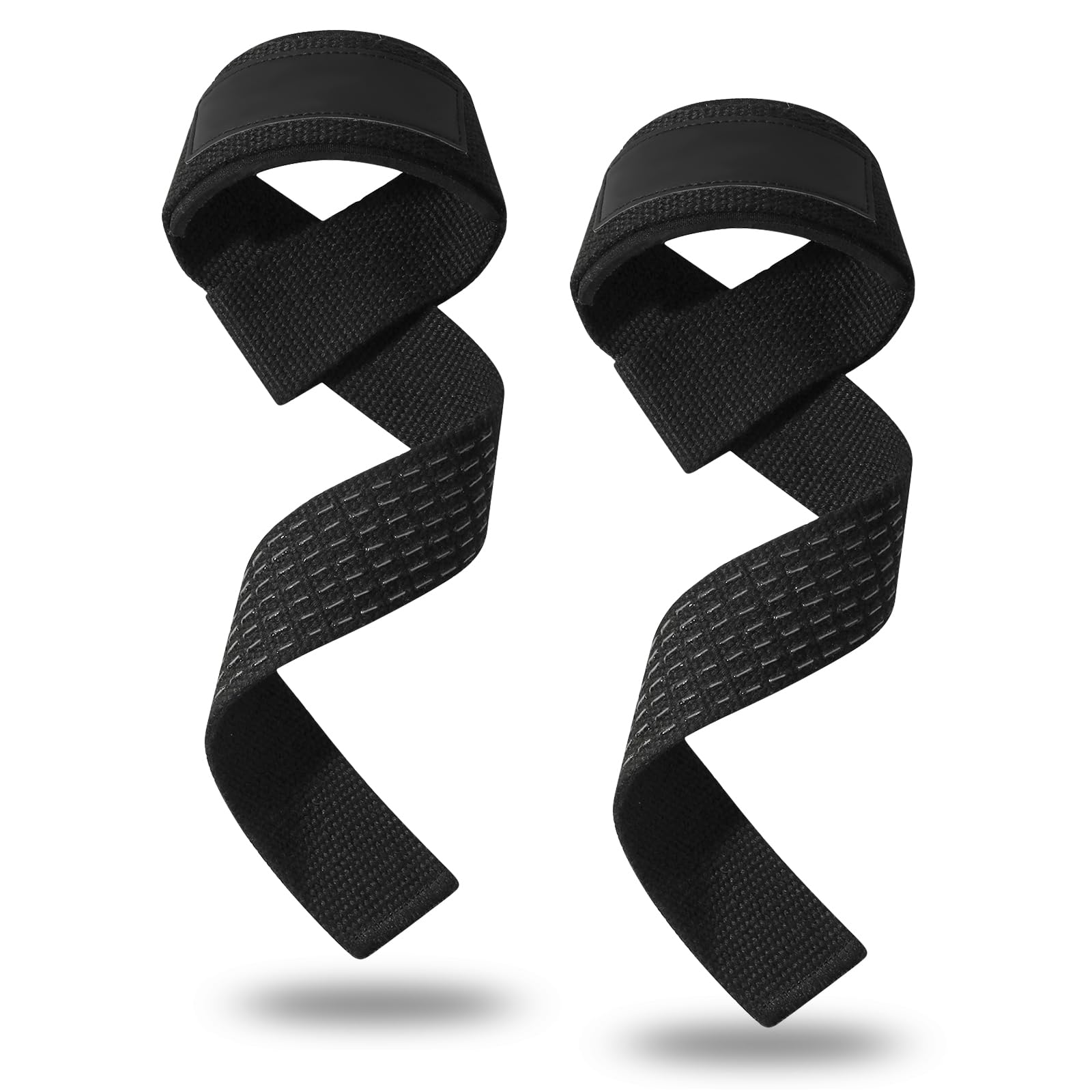 Feelorna Lifting Wrist Straps, Lifting Grips with Extra Hand Surpport Gym Wrist Wraps with Padded and Anti-Skid Silicone for Weightlifting, Bodybuilding (Black)
