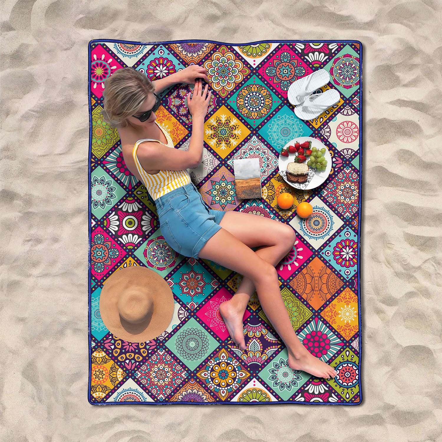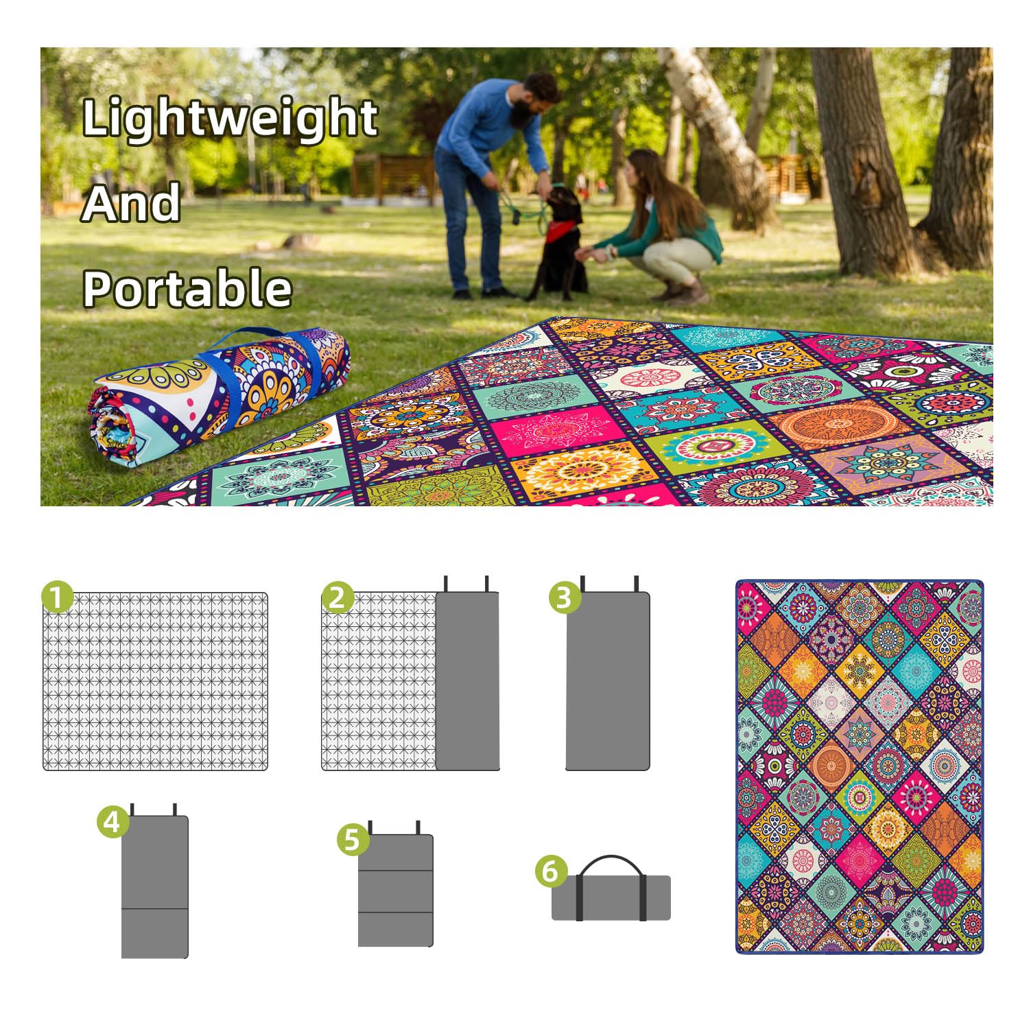 Fefede Waterproof Picnic Blankets Foldable & Portable 60''x80'' Boho Picnic Mat for Outdoors, Large Washable Picnic Blanket for Travel Camping Beach, Park Grass Picnic Blanket Accessories for Adults