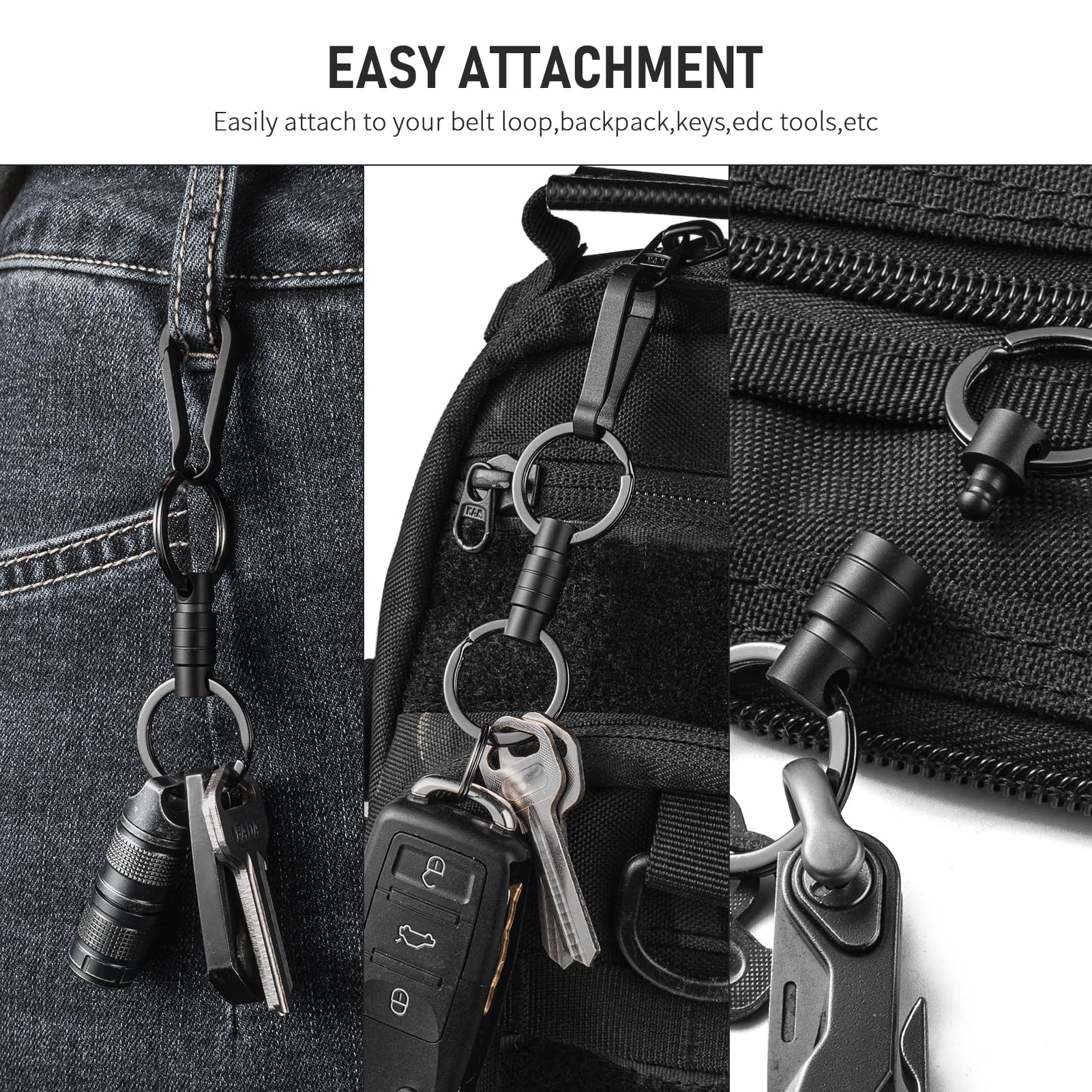 - EASY ACCESS TO YOUR KEYS: The detachable key ring quick release function makes finding your keys quick and easy - saving you time and frustration.Great for giving you keys to valets,familys,friends and more. (the rings do not fit standard key fob)