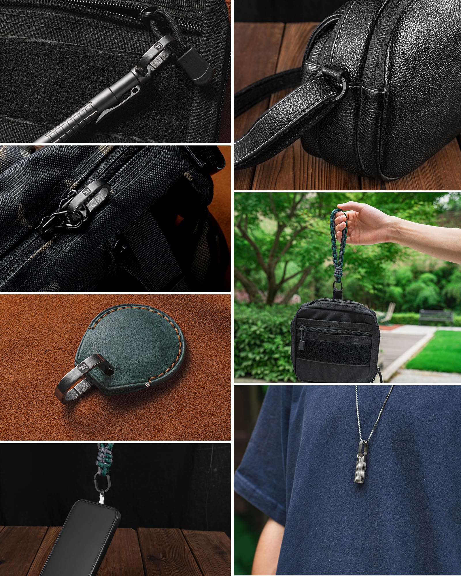 - Multi-functional Accessory: ①Key ring:So much easier to add or remove keys. ②Small keychain accessory: Can be used as a link between the key ring and the keyholder ③Small chain connector:Use it to clip your phone to a wristlet. can use it with a paracord lanyard. ④ Mini key clip: clip the keys to your work bag ⑤ Act as a jump ring on a necklace