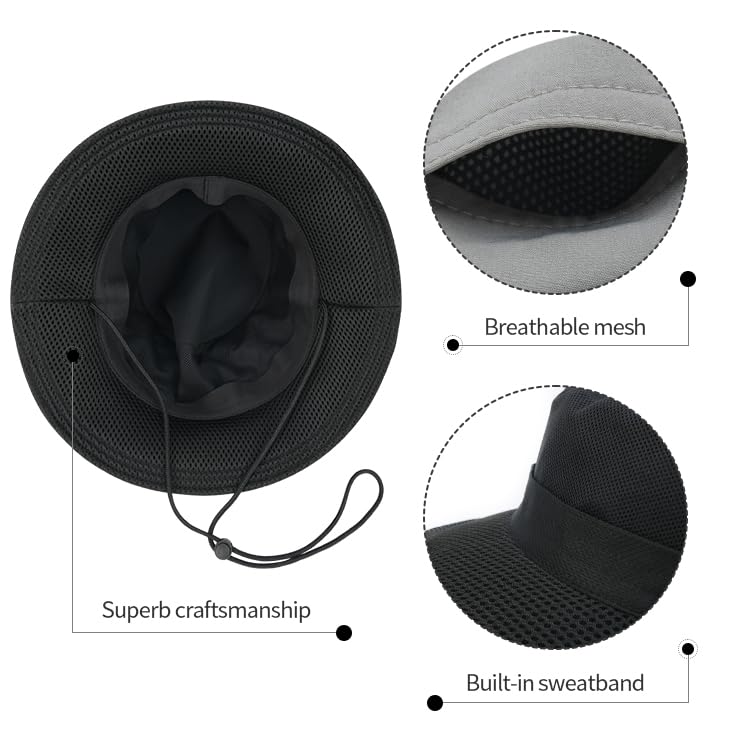 - Design: rear elastic drawstring design, crown design with hidden mesh ventilation around, unique brim, adjustable chin strap holds the hat in place on windy days