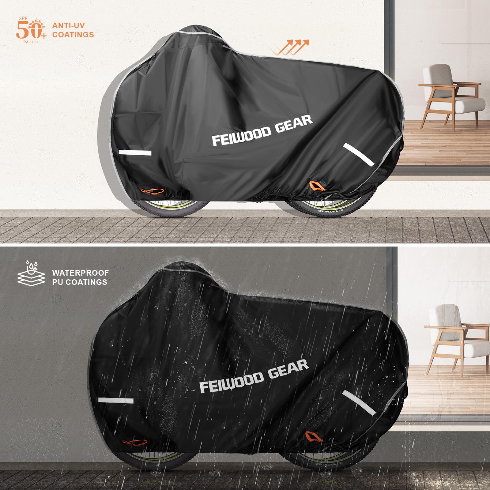 FEIWOOD GEAR Bike Cover for Transport 2 Bikes on Rack, Double Heavy Duty 420D on Handlebar & Pedal, Waterproof Bicycle Cover Outdoor Storage on Rear Bike Rack