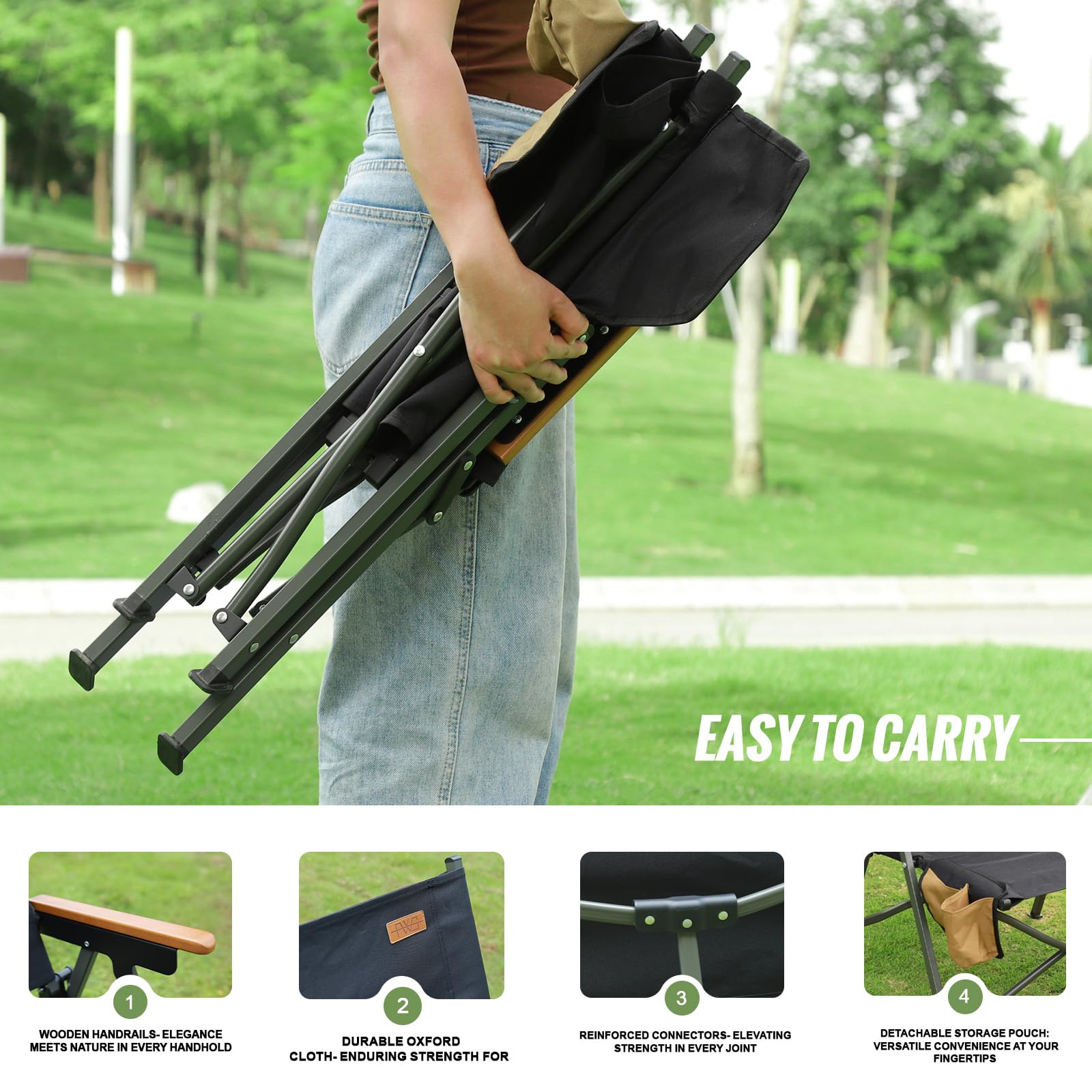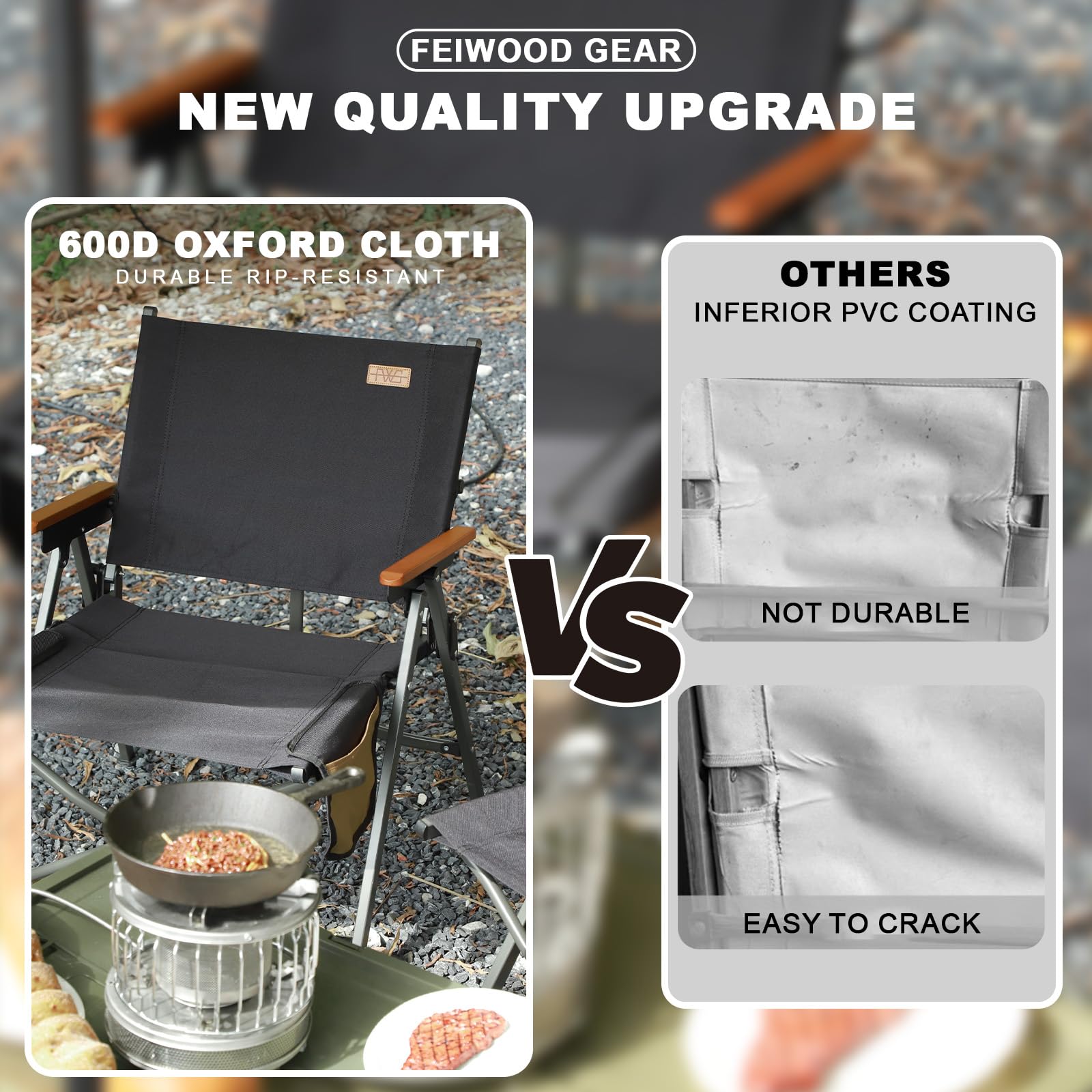 FEIWOOD GEAR Folding Camping Chair, Lightweight Portable Chair Wood Armrest with Side Pockets, Cup Holder for Camping, Picnic, Concert, Beach, Fishing, Outdoor