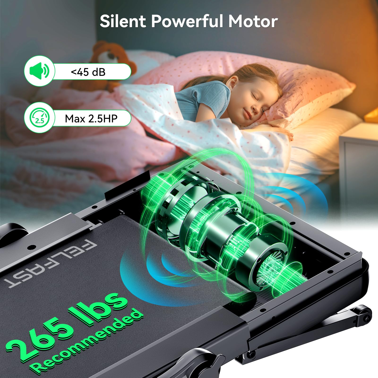 - Safety First & User Friendly - With 5-layer anti-slip running belts and 8 upgraded silicone shock absorption points, this foldable treadmill effectively reduces joint impact and protects your knees. 40x16 inch wide running belt, free to move for you. Inserted safety tether key for an emergency stop helps prevent injury. FelFast incline treadmill comes with anything you need, and we always stand by our product and offer 1-year after-sale service and 24/7 online support.