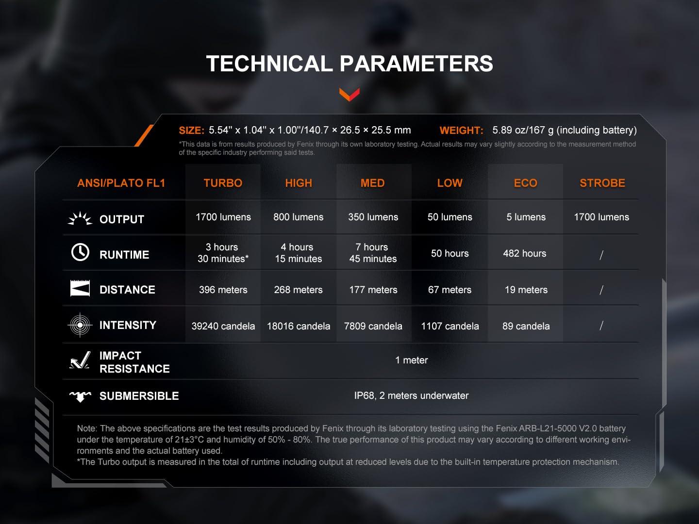 - POWERFUL TACTICAL LIGHT - The PD36R V2.0 is capable of emitting up to 1700 lumens of light and offering a throw distance of up to 433 yards.
