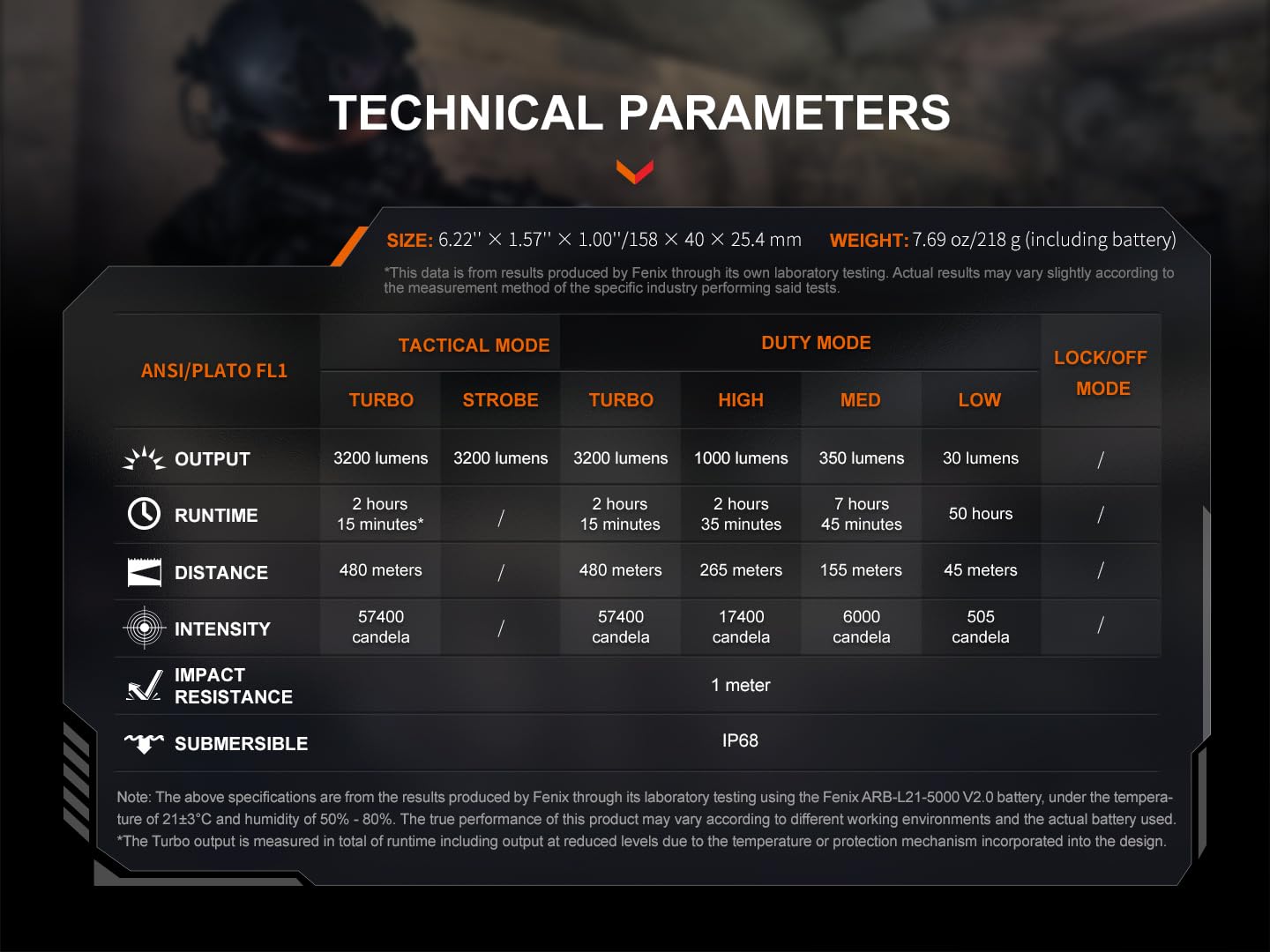 - POWERFUL TACTICAL FLASHLIGHT- Has a 3200 max lumen output with a 525 yard throw, making it an ideal duty light for police, patrol, EDC, and search and rescue.