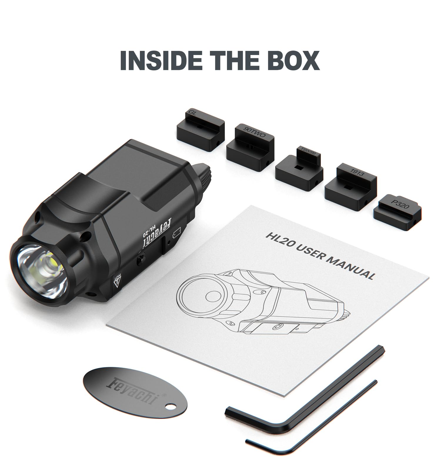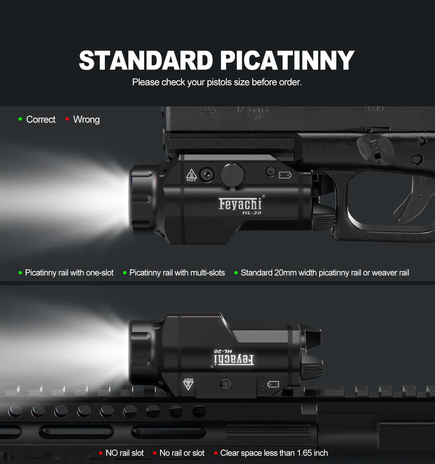 Feyachi HL-20 Pistol Light 1500 Lumen Upgrade LED Weapon Light Compact Rail Mounted Handgun Tactical Flashlight Rail Locating Keys for Picatinny, Black