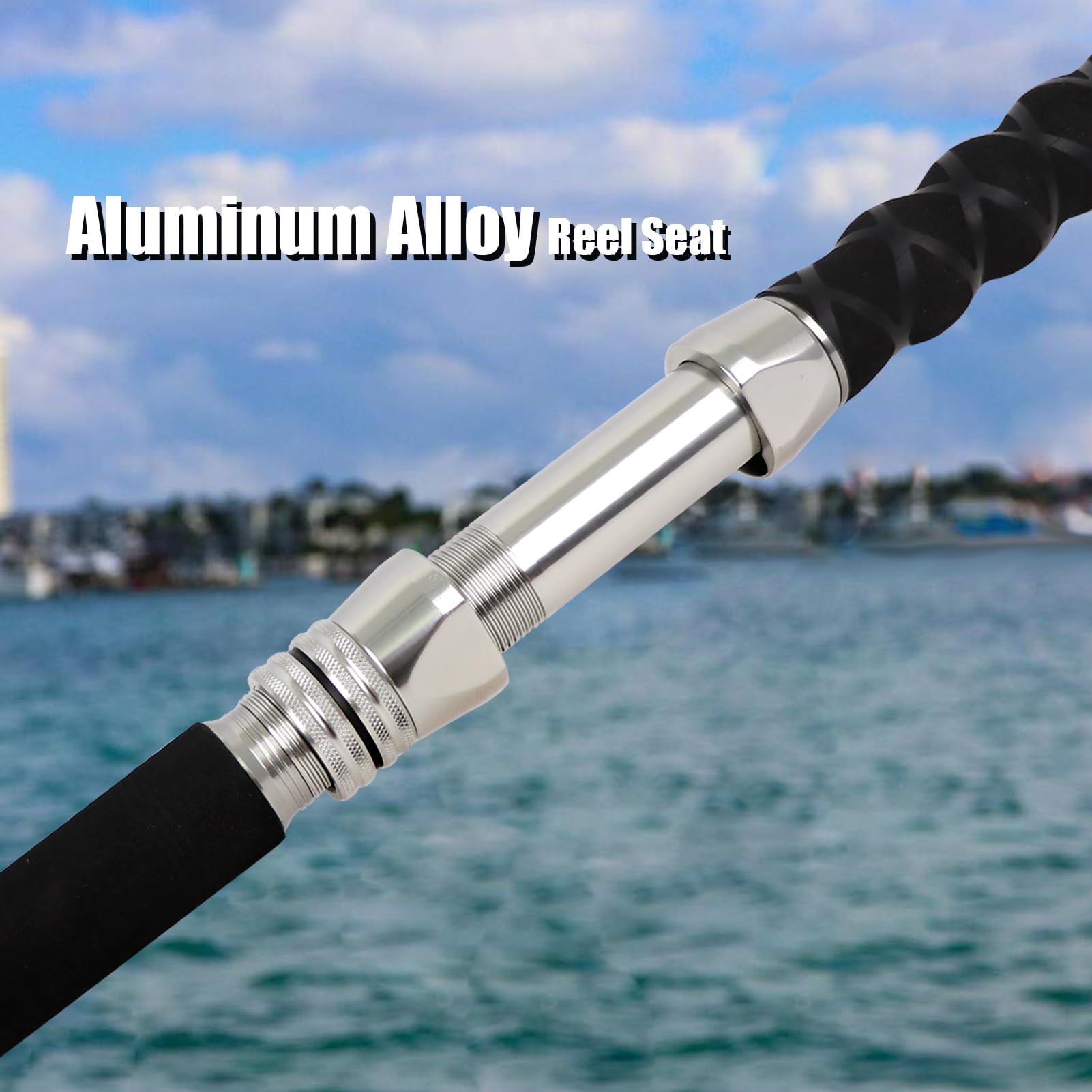 Fiblink 2-Piece Boat Conventional Fishing Rod Portable Spinning/Casting Rod Carbon Fishing Pole (Spin - 7' - H (30-50lbs))
