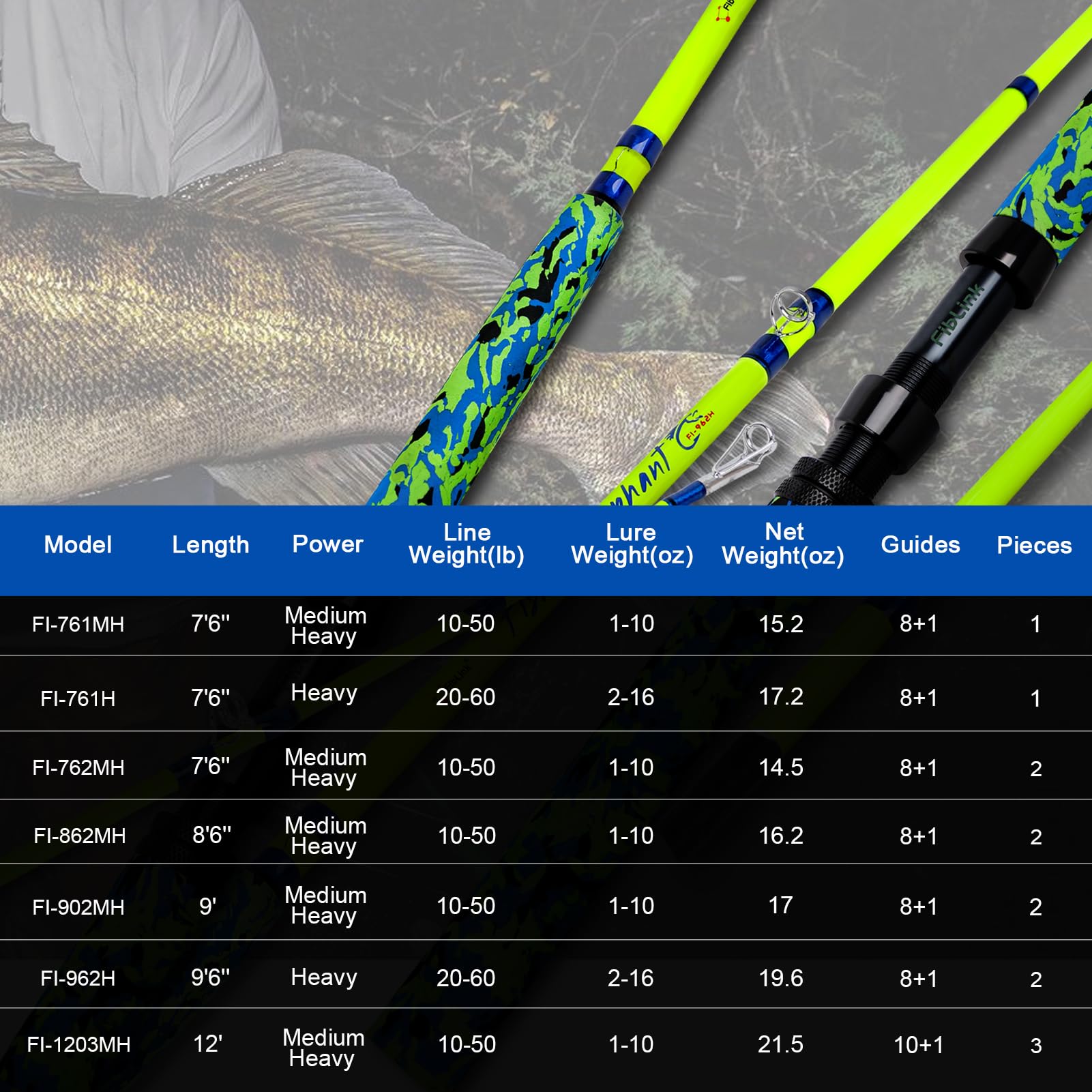 - 1 Piece/2 Piece Design: 1 Piece catfish rod are more sensitive and less likely to separate or break when casting or fighting with fish; 2-piece catfish rod is easy to transport and can be easily put into a vehicle or boat