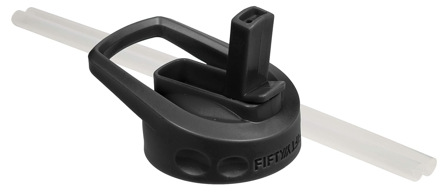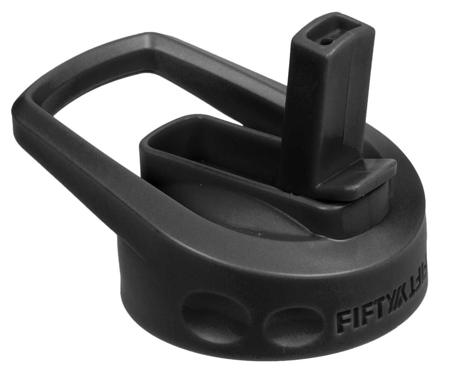 FIFTY/FIFTY A68002BK0 Wide Mouth Cap Lid Water Bottle with Straw, Plastic, Black
