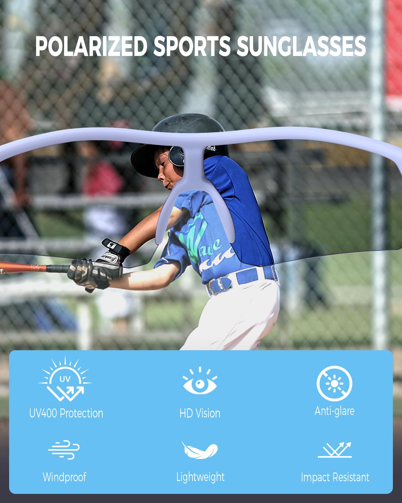 - SPECIALLY DESIGNED FOR SPORTS: Especially suitable for sports, boys baseball sunglasses offer clear vision and minimized glare, making them ideal for outdoor sports, such as baseball, softball, climbing, driving, fishing, golfing, hiking, running, skiing, cycling and so on. Capture every moment on the field without the disruption of dazzling sunlight