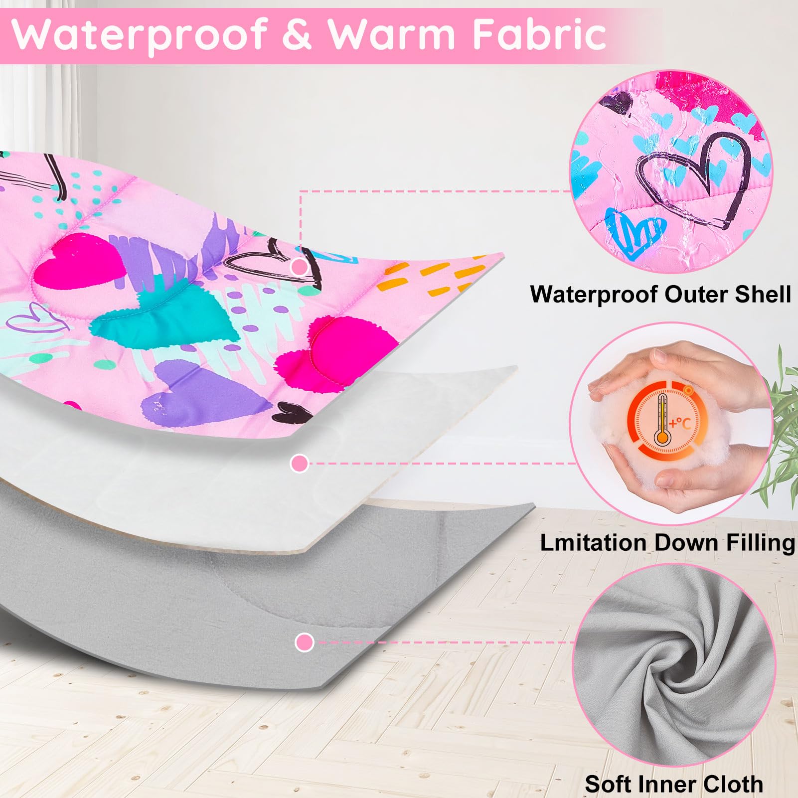 FIOBEE Kids Sleeping Bag for Girls Boys 3 Season Warm & Cool Weather 41-60.8℉ Camping Sleeping Bags with Backpacking Bag for Traveling Hiking Indoor Outdoor Camping Essentials Gear, Pink Love