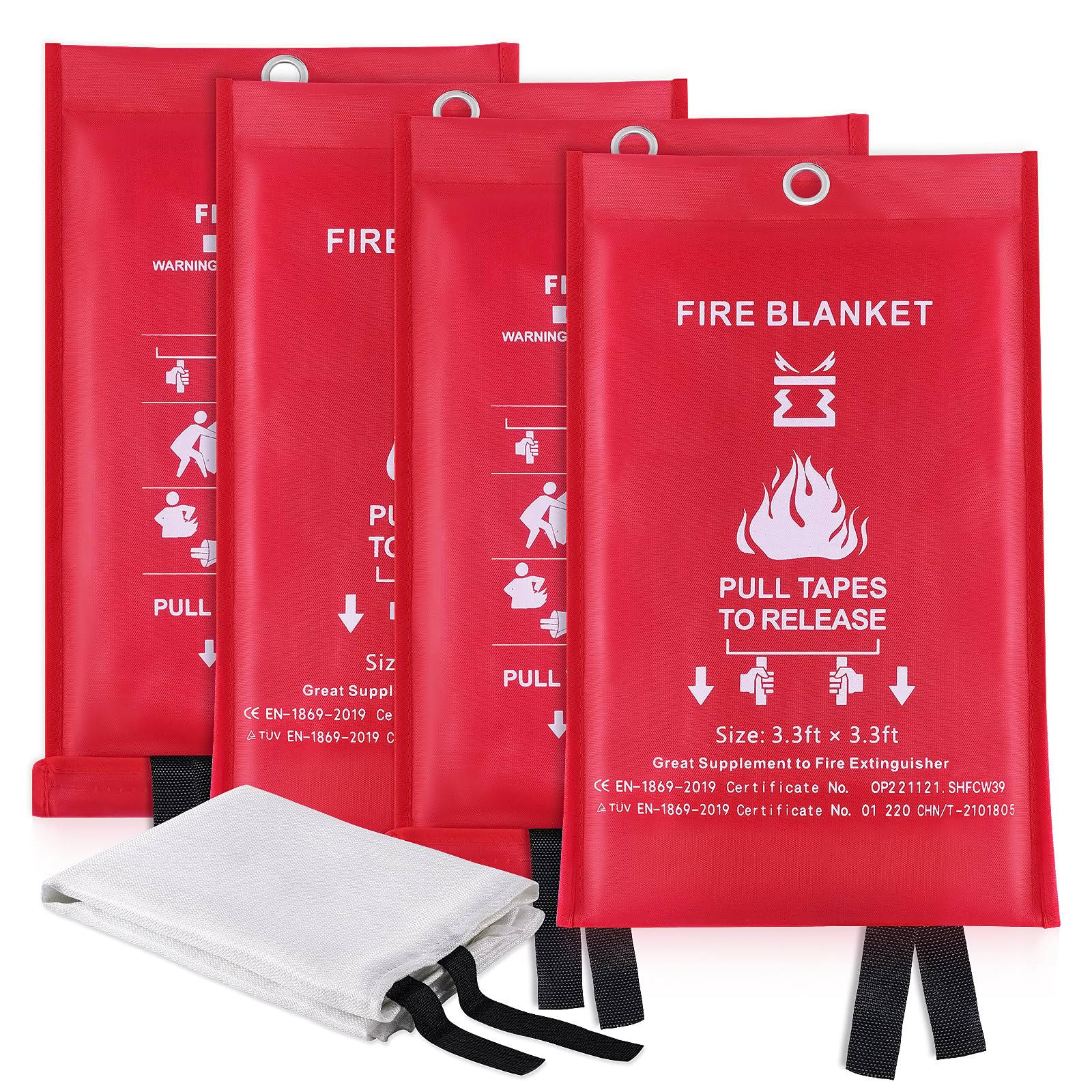 - ✅ Highest Rated Fire Blankets : The 3.3ft x 3.3ft large fire blankets are made of the highest quality woven glass fibers. Which can works under 1076°F (580°C), but not melt, nor catch fire. Fire Blanket should be used on all chip or oil & fat fires as it is not ideal to use a regular fire extinguisher due to the potential risk of spraying burning oil & spreading the fire or causing injury.
