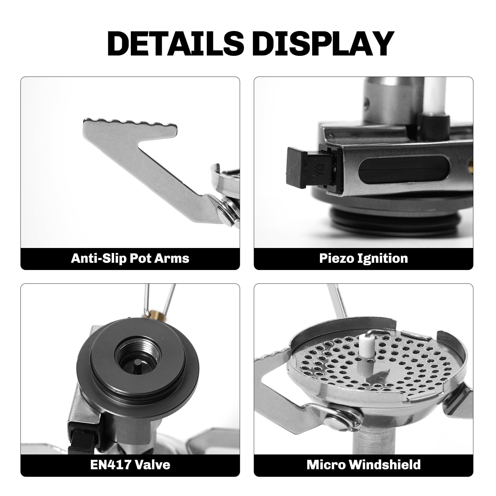 - Durable Premium Materials: Built with stainless steel, ceramic, aluminum alloy, and silicone, this stove offers long-lasting durability and reliable performance for outdoor adventures.
