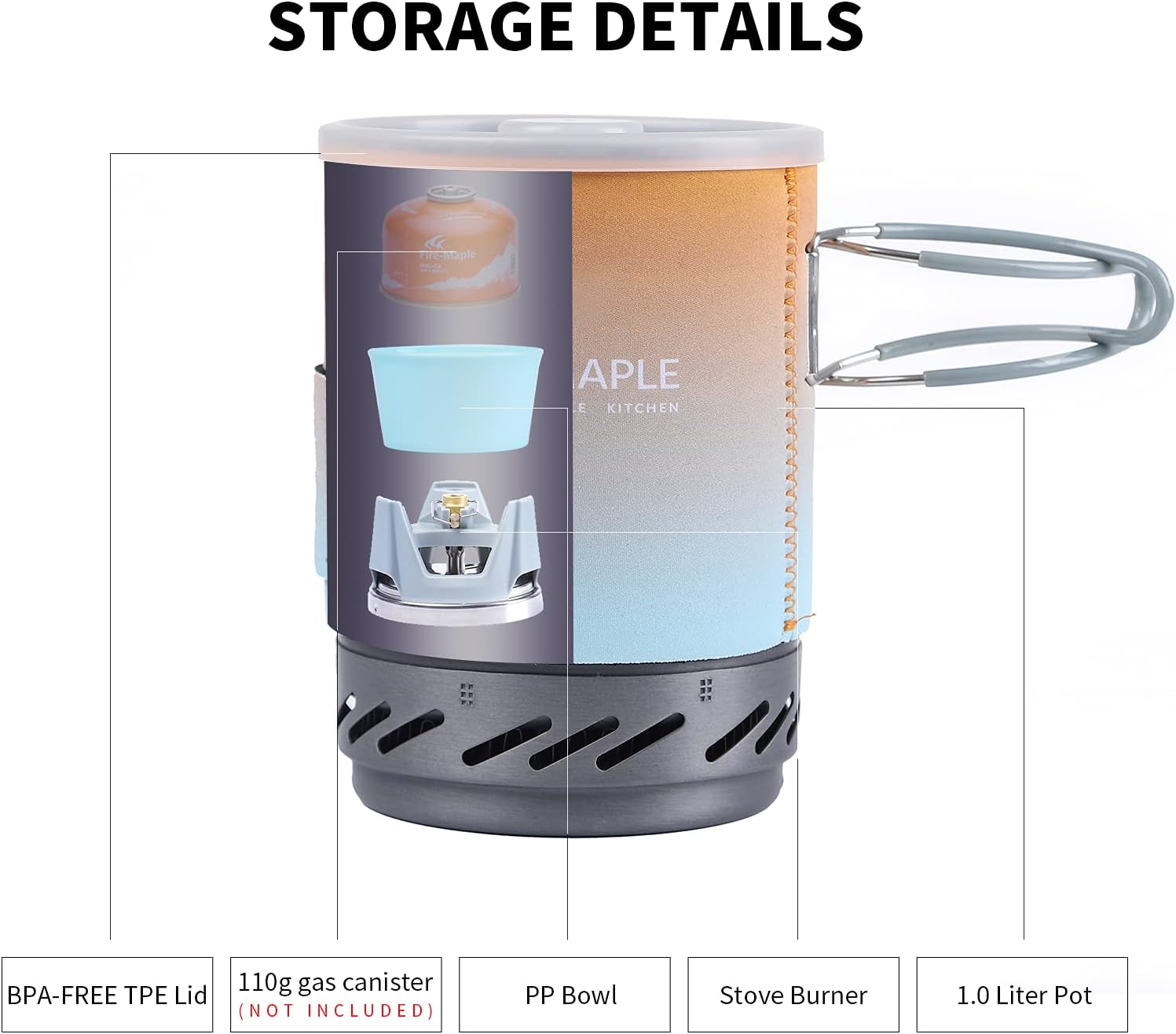 - COMPACT AND LIGHTWEIGHT - All accessories including stove, bowl and fuel canister fit into the 1 liter cook pot. THIS SET DOES NOT INCLUDE A FUEL CANISTER, but is compatible with most canisters EXCEPT the COLEMAN fuel canisters. This item weighs only 18 oz!
